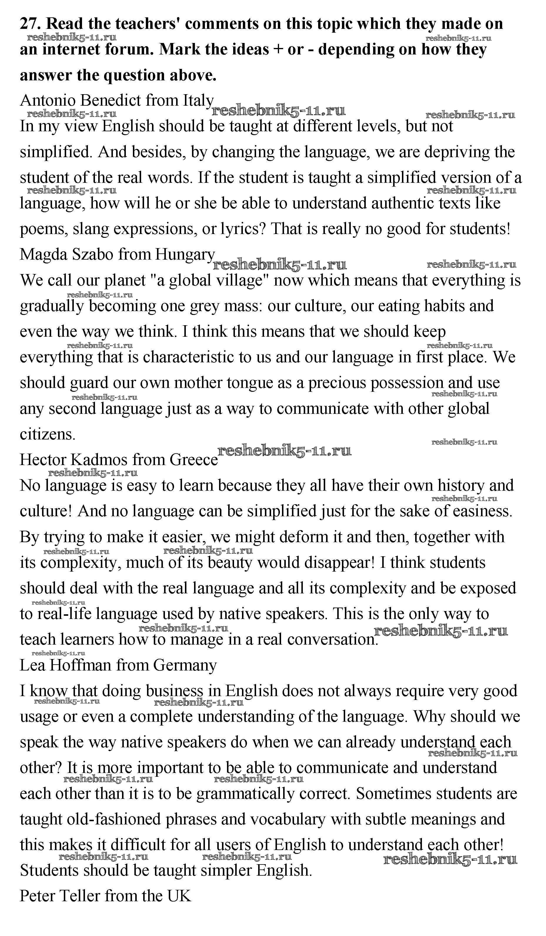 Готовая домашняя работа с ответами по Английскому языку за 11 класс Биболетова, Трубанева Учебник Enjoy English Титул 2015 ФГОС - Unit 1 27
