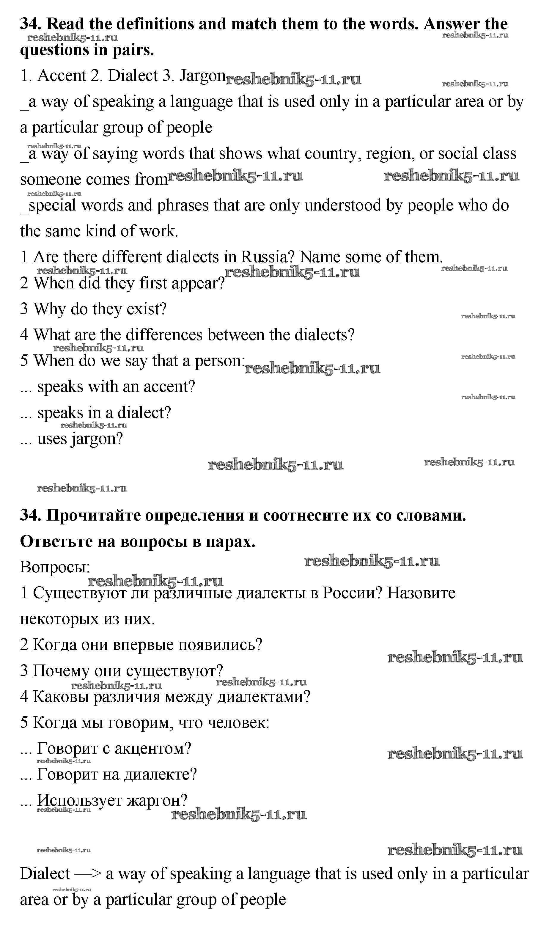 Готовая домашняя работа с ответами по Английскому языку за 11 класс Биболетова, Трубанева Учебник Enjoy English Титул 2015 ФГОС - Unit 1 34