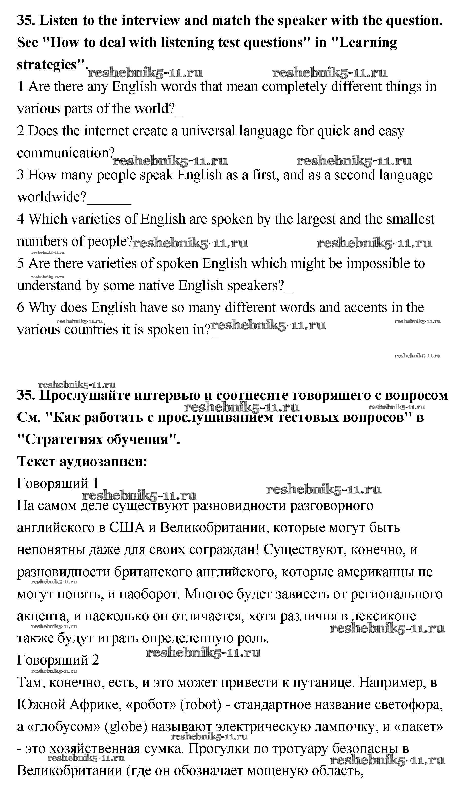 Готовая домашняя работа с ответами по Английскому языку за 11 класс Биболетова, Трубанева Учебник Enjoy English Титул 2015 ФГОС - Unit 1 35