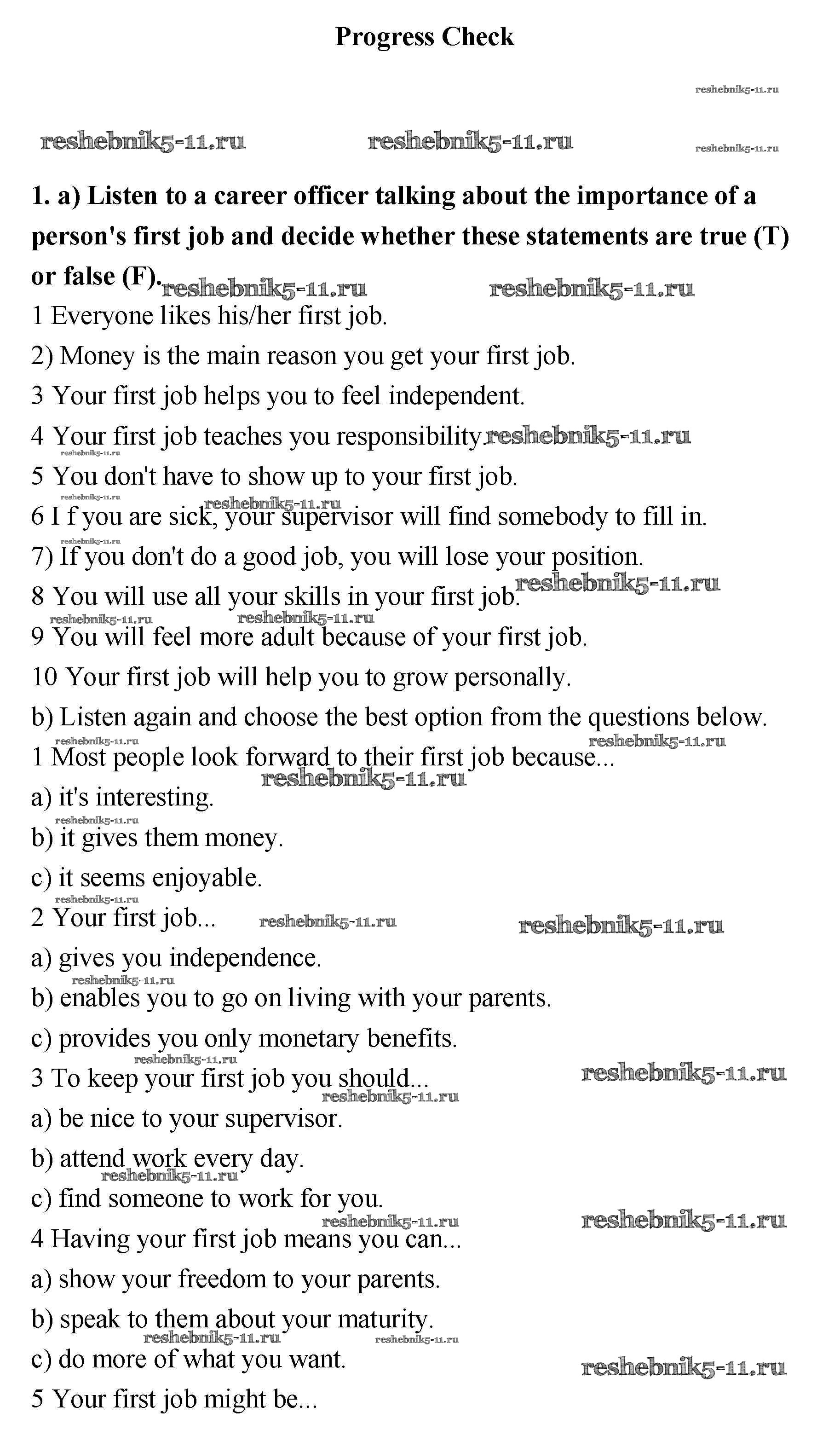 Готовая домашняя работа с ответами по Английскому языку за 11 класс Биболетова, Трубанева Учебник Enjoy English Титул 2015 ФГОС - Progress Check 1