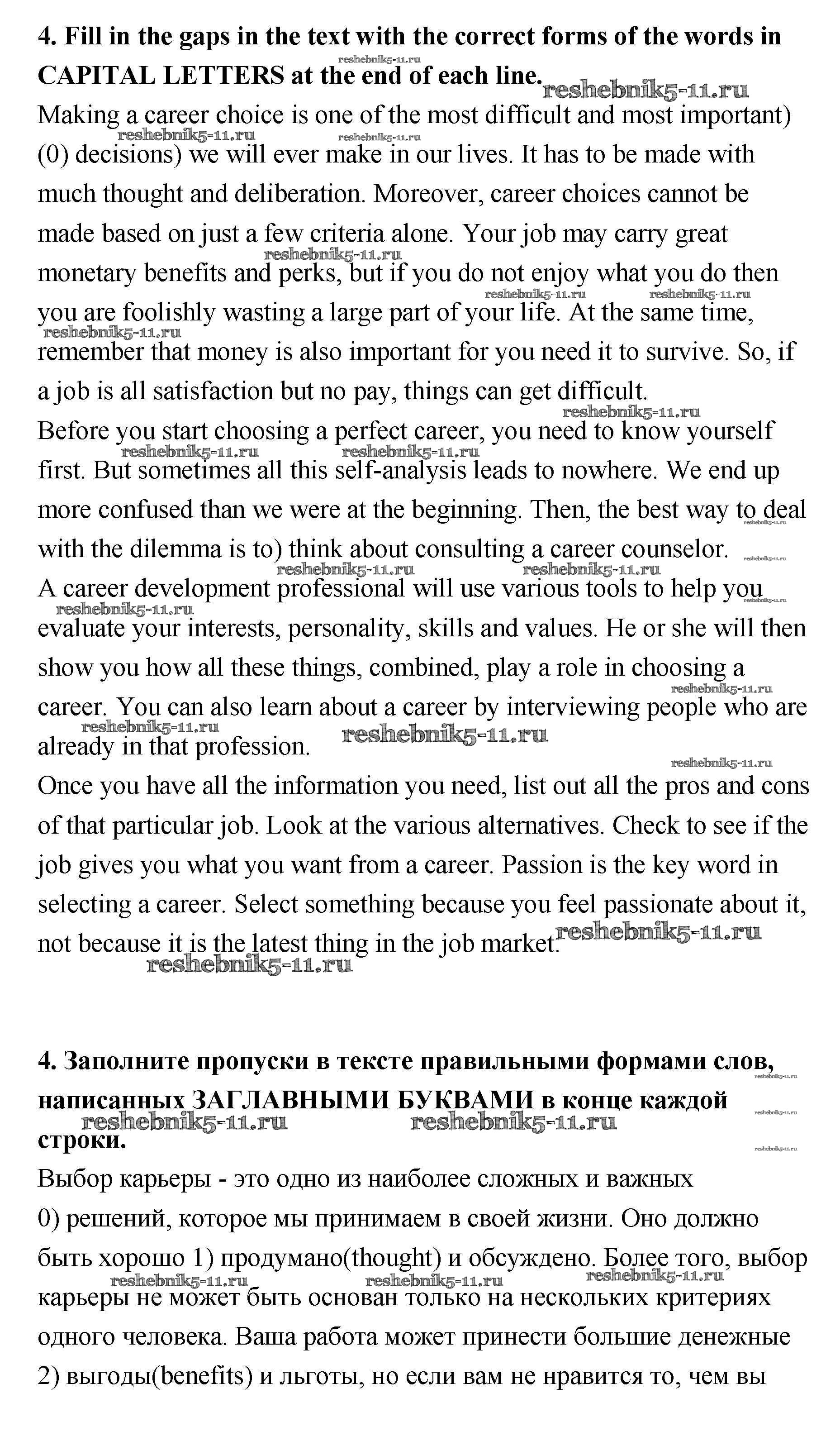 Готовая домашняя работа с ответами по Английскому языку за 11 класс Биболетова, Трубанева Учебник Enjoy English Титул 2015 ФГОС - Progress Check 4