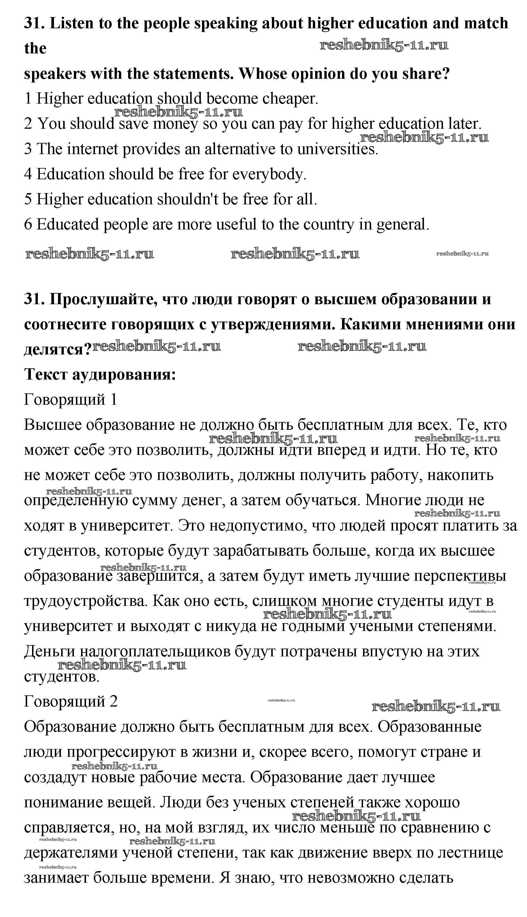 Готовая домашняя работа с ответами по Английскому языку за 11 класс Биболетова, Трубанева Учебник Enjoy English Титул 2015 ФГОС - Unit 2 31