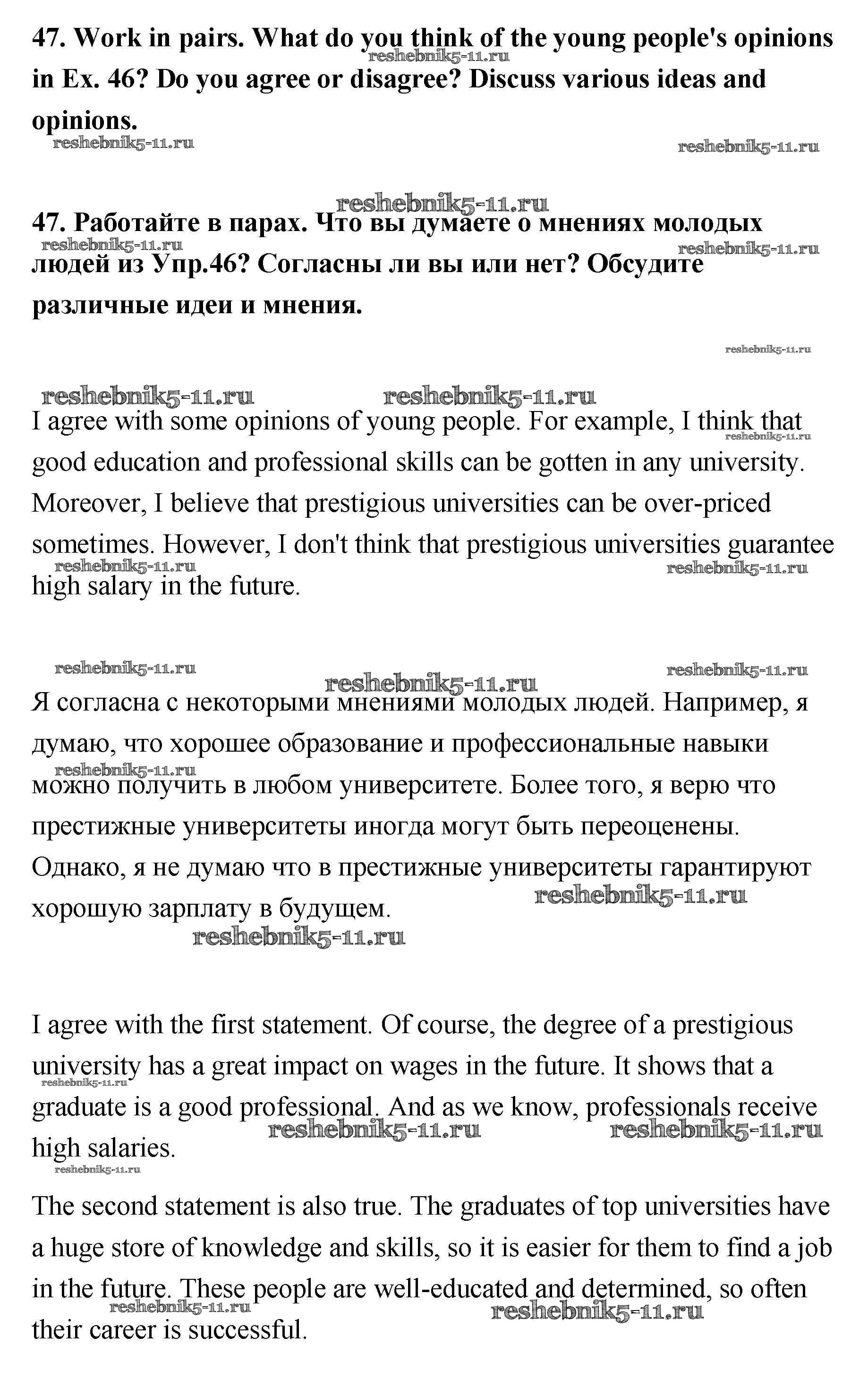 Готовая домашняя работа с ответами по Английскому языку за 11 класс Биболетова, Трубанева Учебник Enjoy English Титул 2015 ФГОС - Unit 2 47