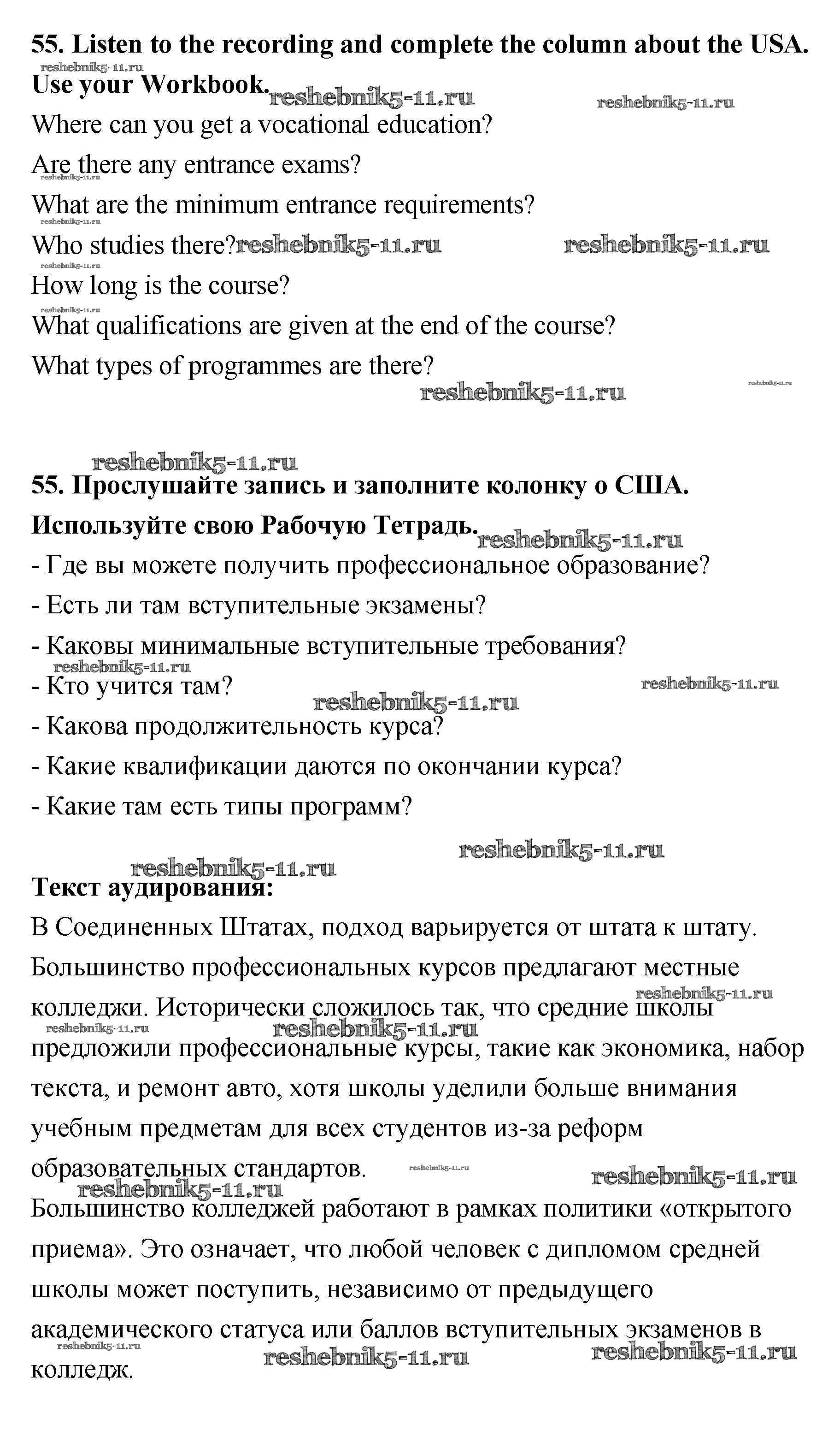 Готовая домашняя работа с ответами по Английскому языку за 11 класс Биболетова, Трубанева Учебник Enjoy English Титул 2015 ФГОС - Unit 2 55