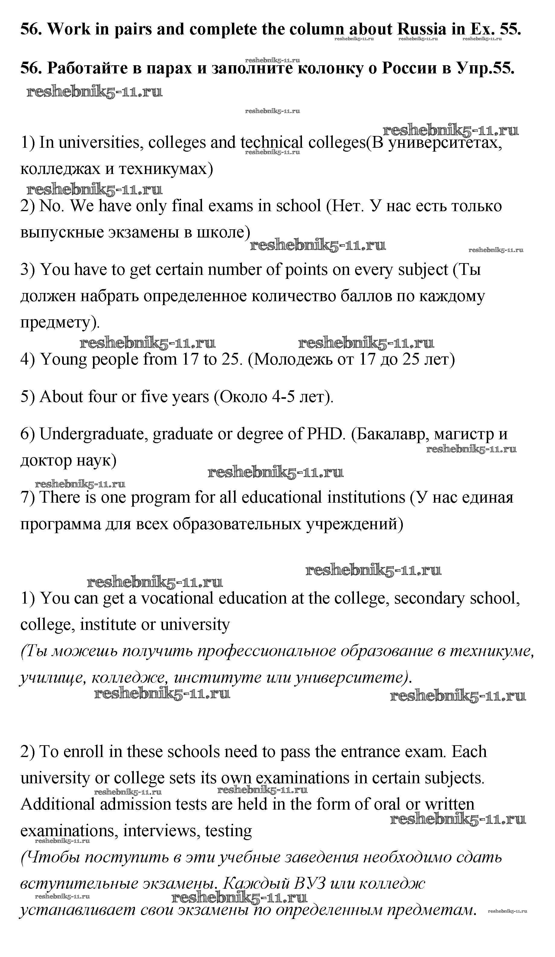 Готовая домашняя работа с ответами по Английскому языку за 11 класс Биболетова, Трубанева Учебник Enjoy English Титул 2015 ФГОС - Unit 2 56