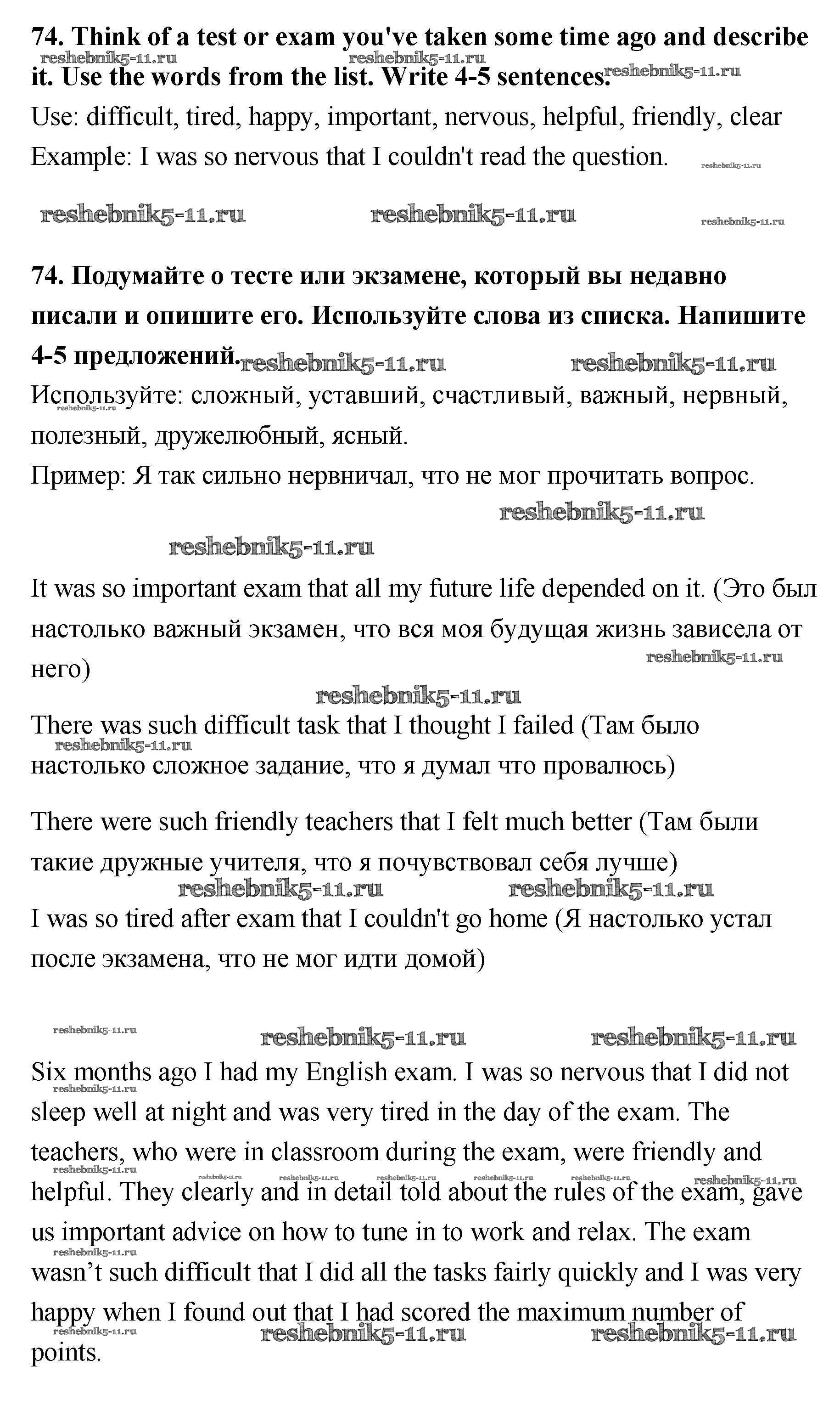 Готовая домашняя работа с ответами по Английскому языку за 11 класс Биболетова, Трубанева Учебник Enjoy English Титул 2015 ФГОС - Unit 2 74