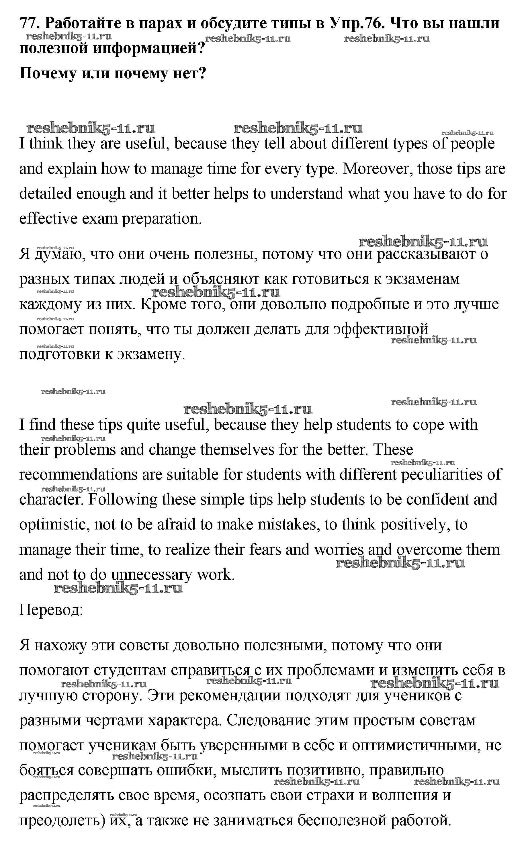 Готовая домашняя работа с ответами по Английскому языку за 11 класс Биболетова, Трубанева Учебник Enjoy English Титул 2015 ФГОС - Unit 2 77