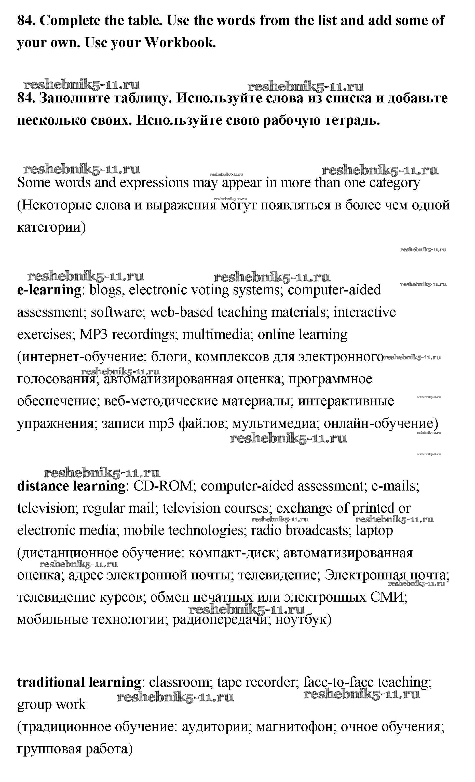 Готовая домашняя работа с ответами по Английскому языку за 11 класс Биболетова, Трубанева Учебник Enjoy English Титул 2015 ФГОС - Unit 2 84