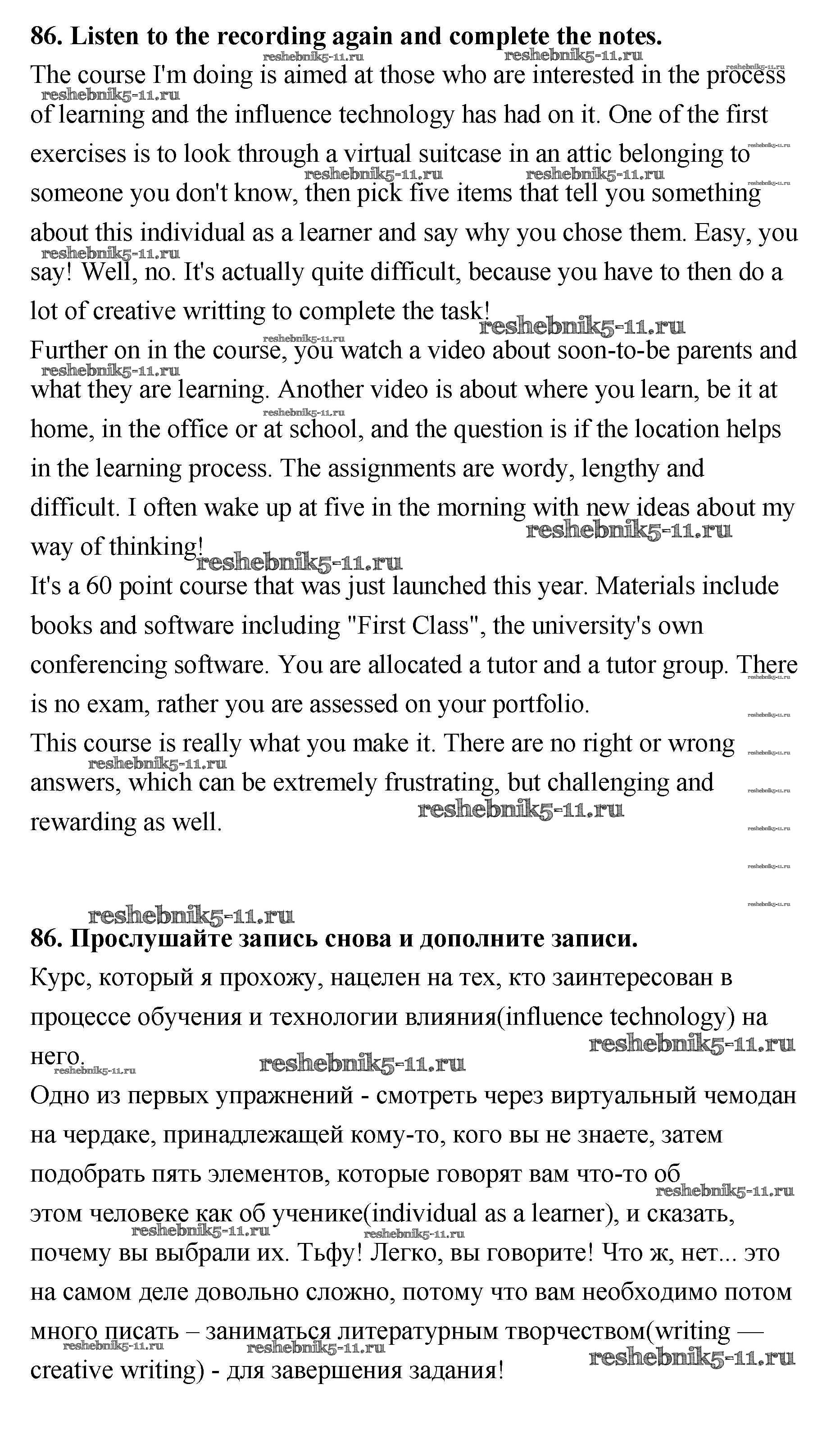Готовая домашняя работа с ответами по Английскому языку за 11 класс Биболетова, Трубанева Учебник Enjoy English Титул 2015 ФГОС - Unit 2 86