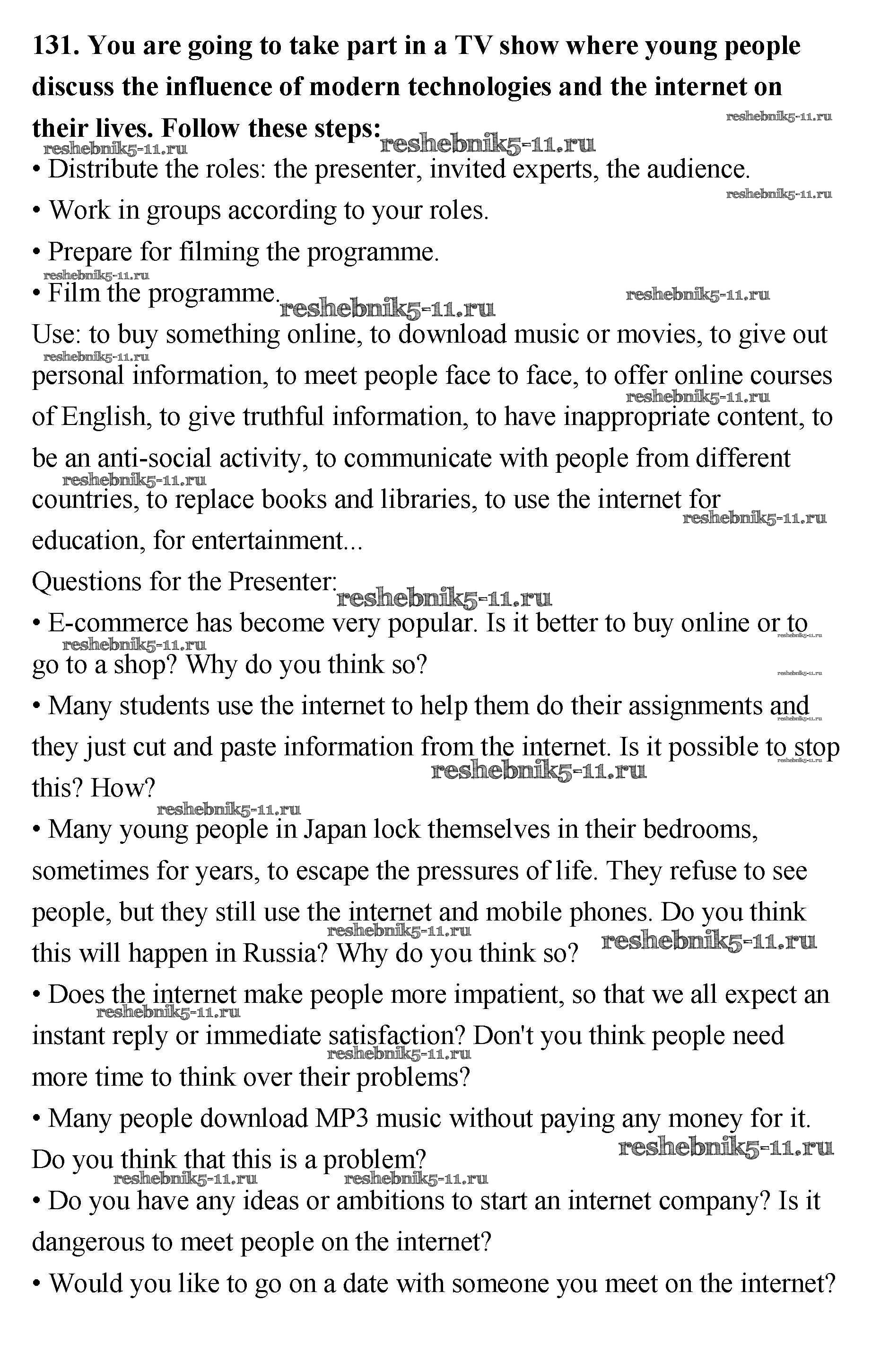 Готовая домашняя работа с ответами по Английскому языку за 11 класс Биболетова, Трубанева Учебник Enjoy English Титул 2015 ФГОС - Unit 3 131