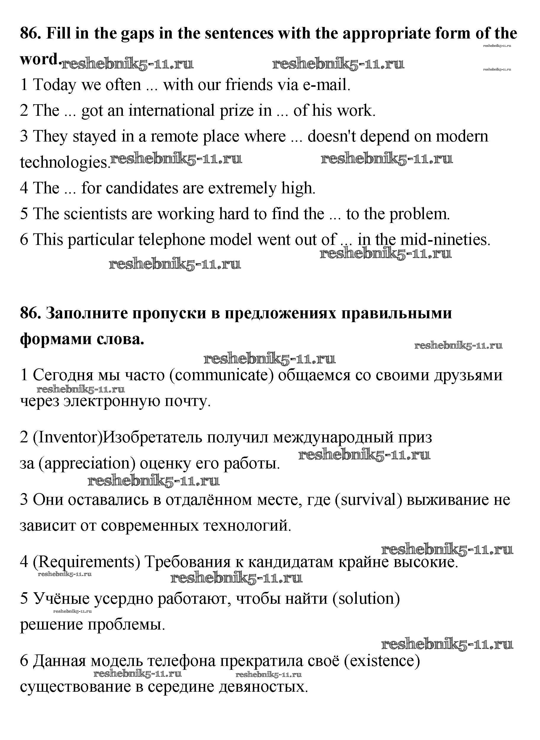 Готовая домашняя работа с ответами по Английскому языку за 11 класс Биболетова, Трубанева Учебник Enjoy English Титул 2015 ФГОС - Unit 4 86