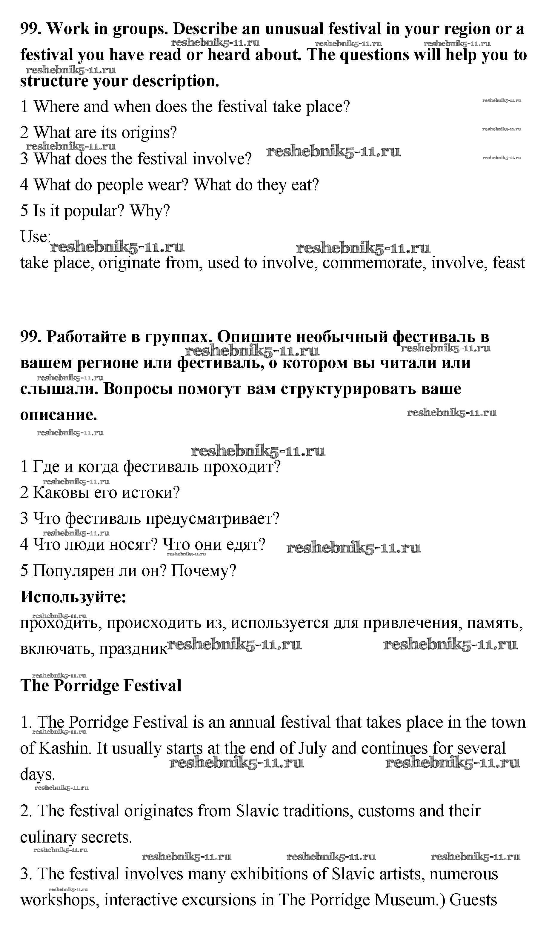 Готовая домашняя работа с ответами по Английскому языку за 11 класс Биболетова, Трубанева Учебник Enjoy English Титул 2015 ФГОС - Unit 4 99