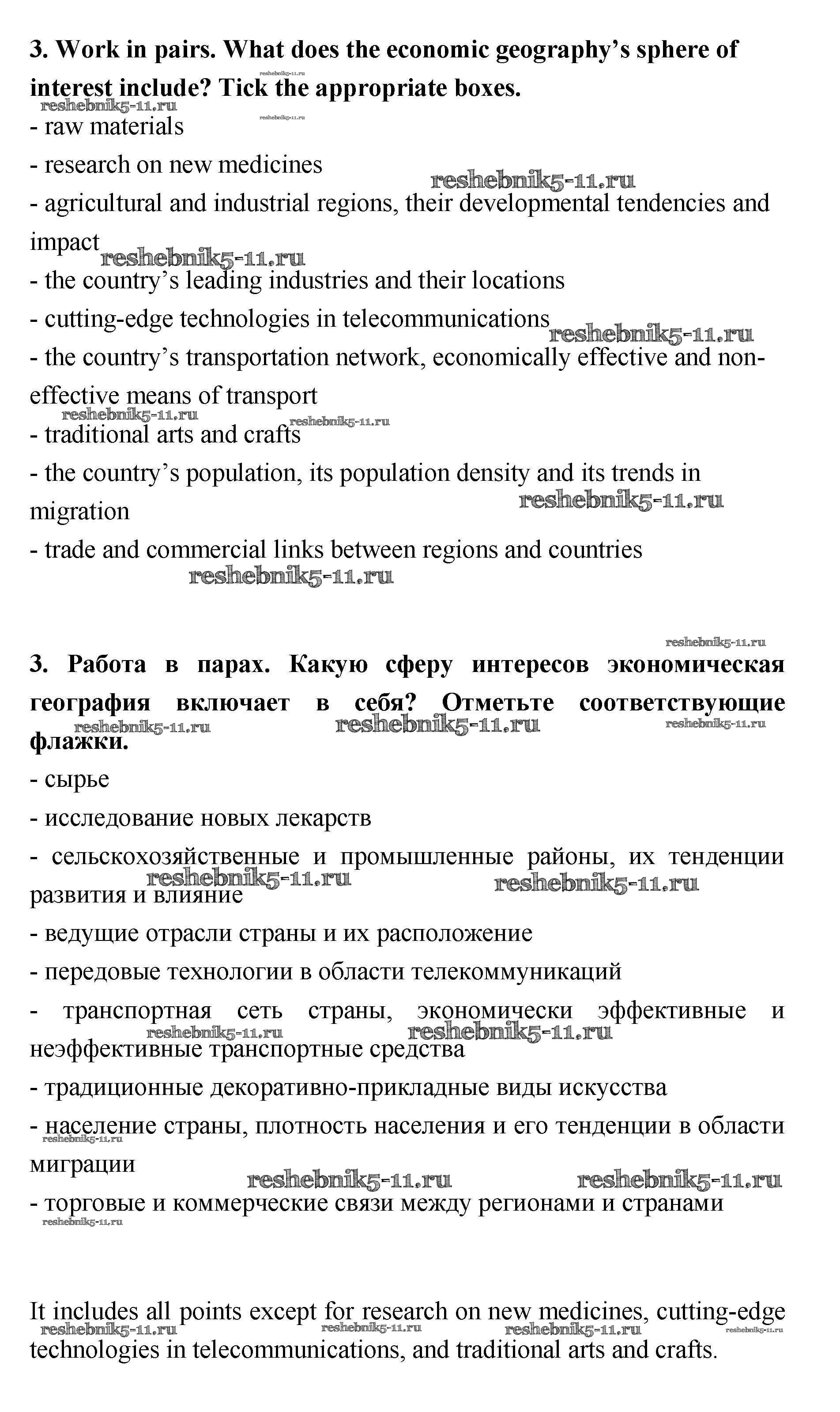 Готовая домашняя работа с ответами по Английскому языку за 11 класс Биболетова, Трубанева Учебник Enjoy English Титул 2015 ФГОС - What's economic geography about? 3