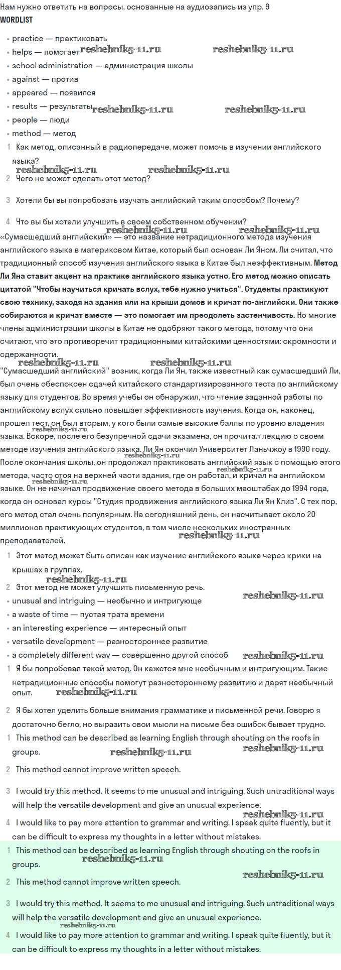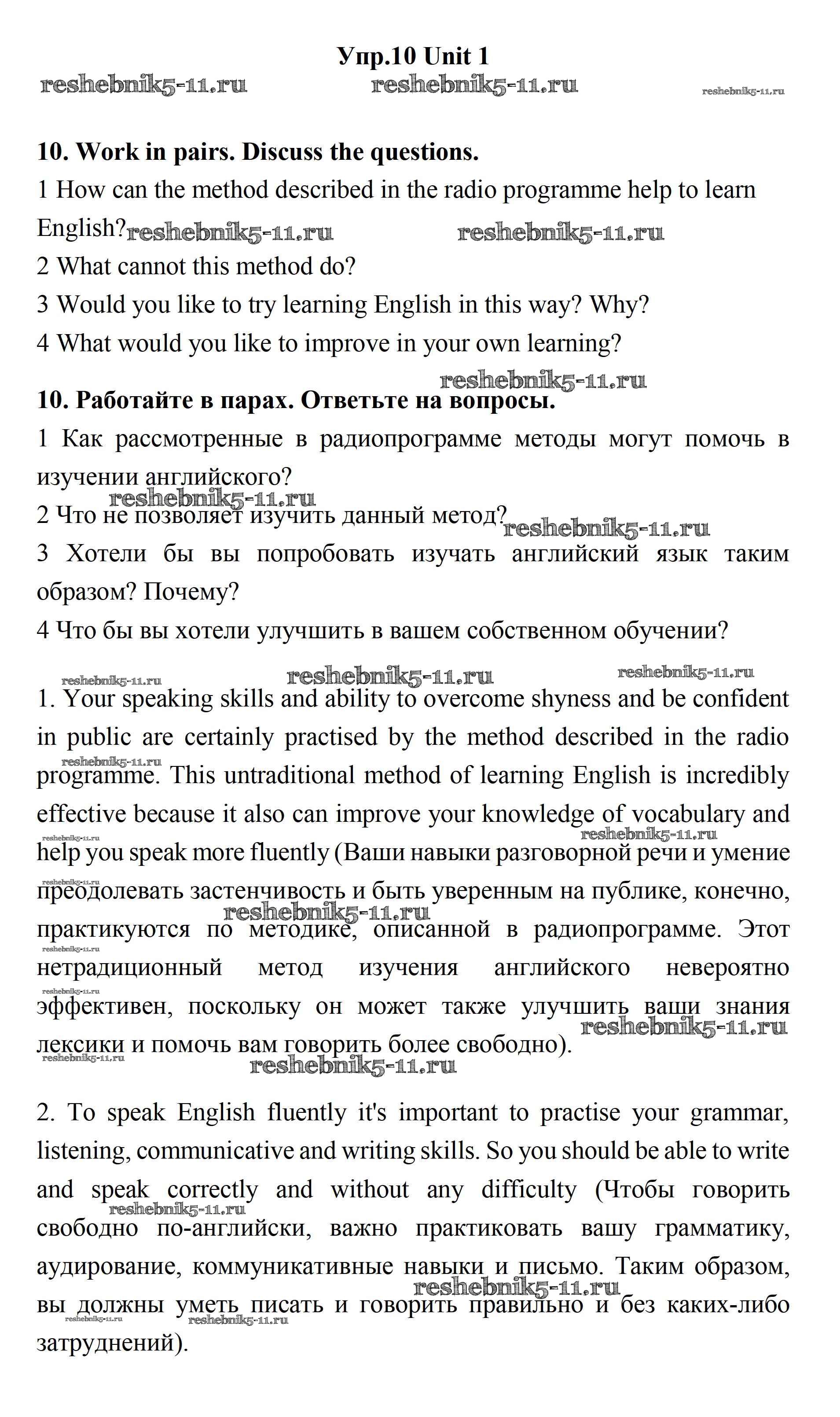 Готовая домашняя работа с ответами по Английскому языку за 11 класс Биболетова, Бабушис, Снежко Учебник Enjoy English Дрофа 2017 ФГОС - Unit 1. Young People in Society 10