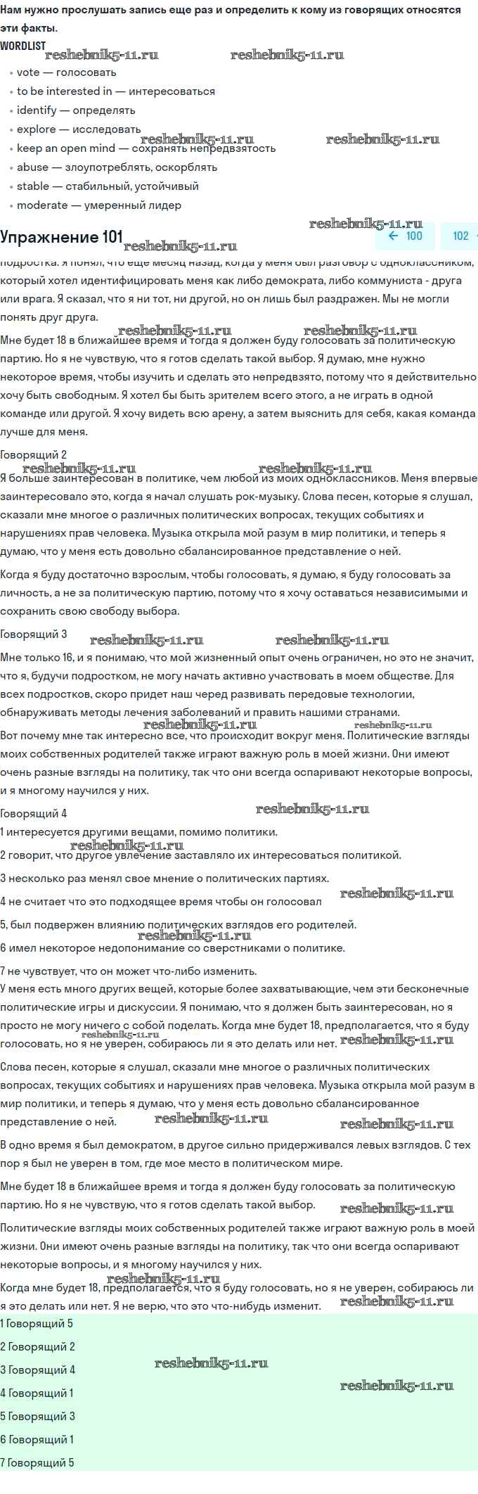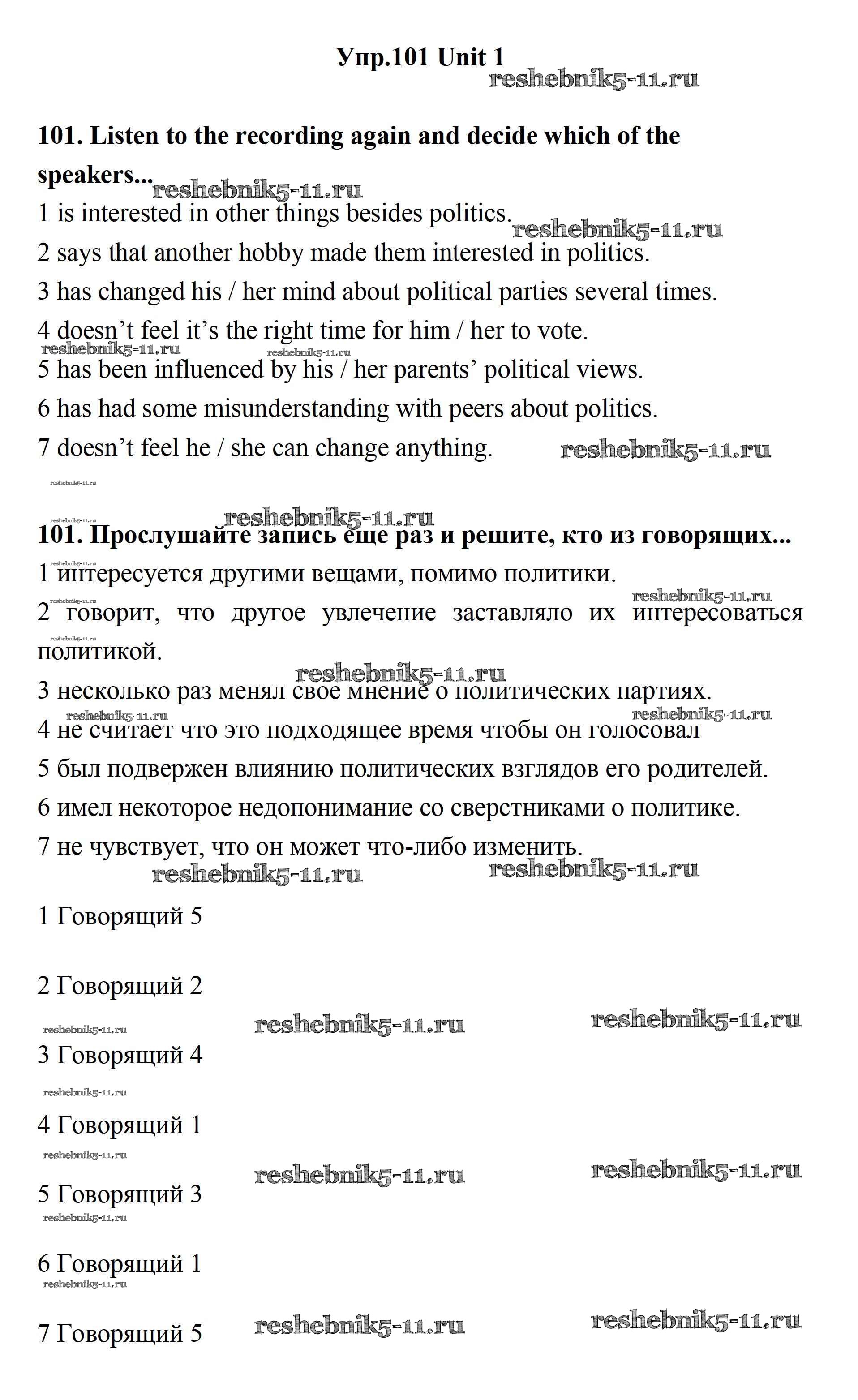 Готовая домашняя работа с ответами по Английскому языку за 11 класс Биболетова, Бабушис, Снежко Учебник Enjoy English Дрофа 2017 ФГОС - Unit 1. Young People in Society 101