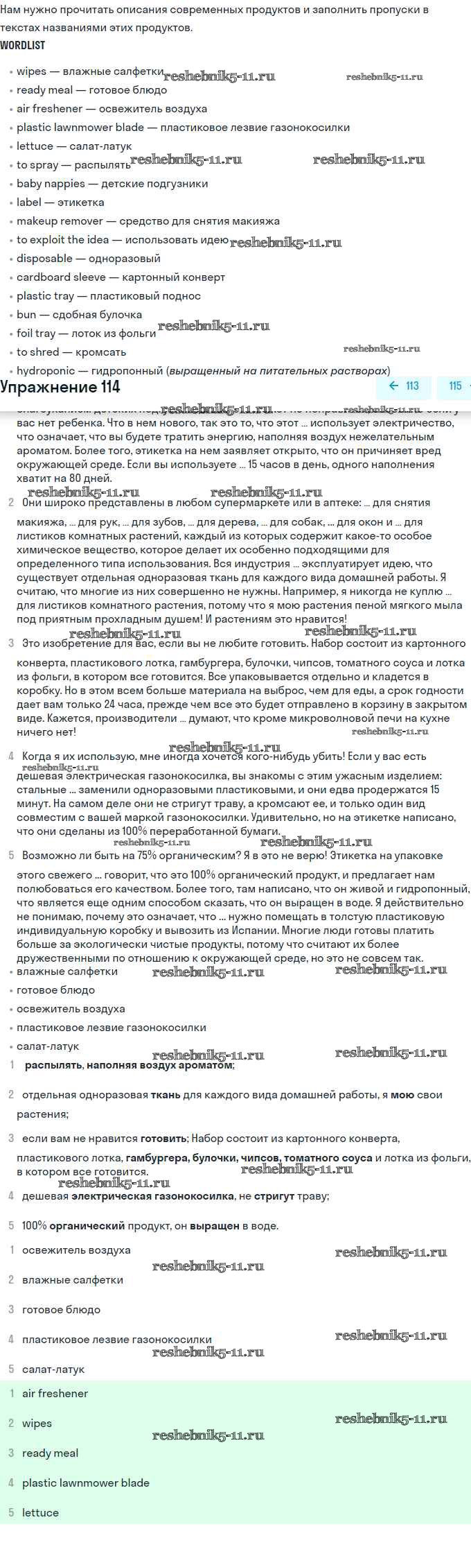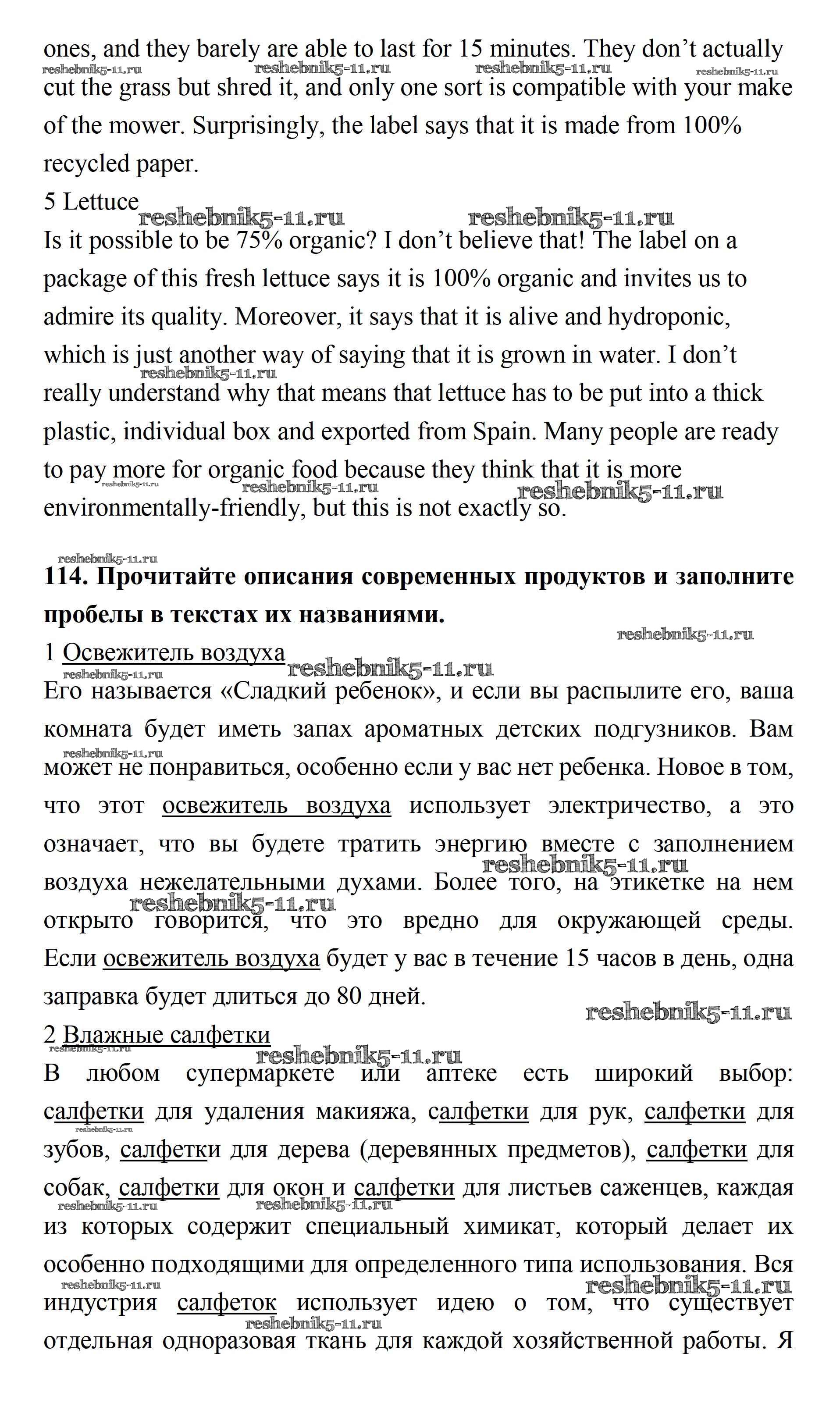 Готовая домашняя работа с ответами по Английскому языку за 11 класс Биболетова, Бабушис, Снежко Учебник Enjoy English Дрофа 2017 ФГОС - Unit 1. Young People in Society 114