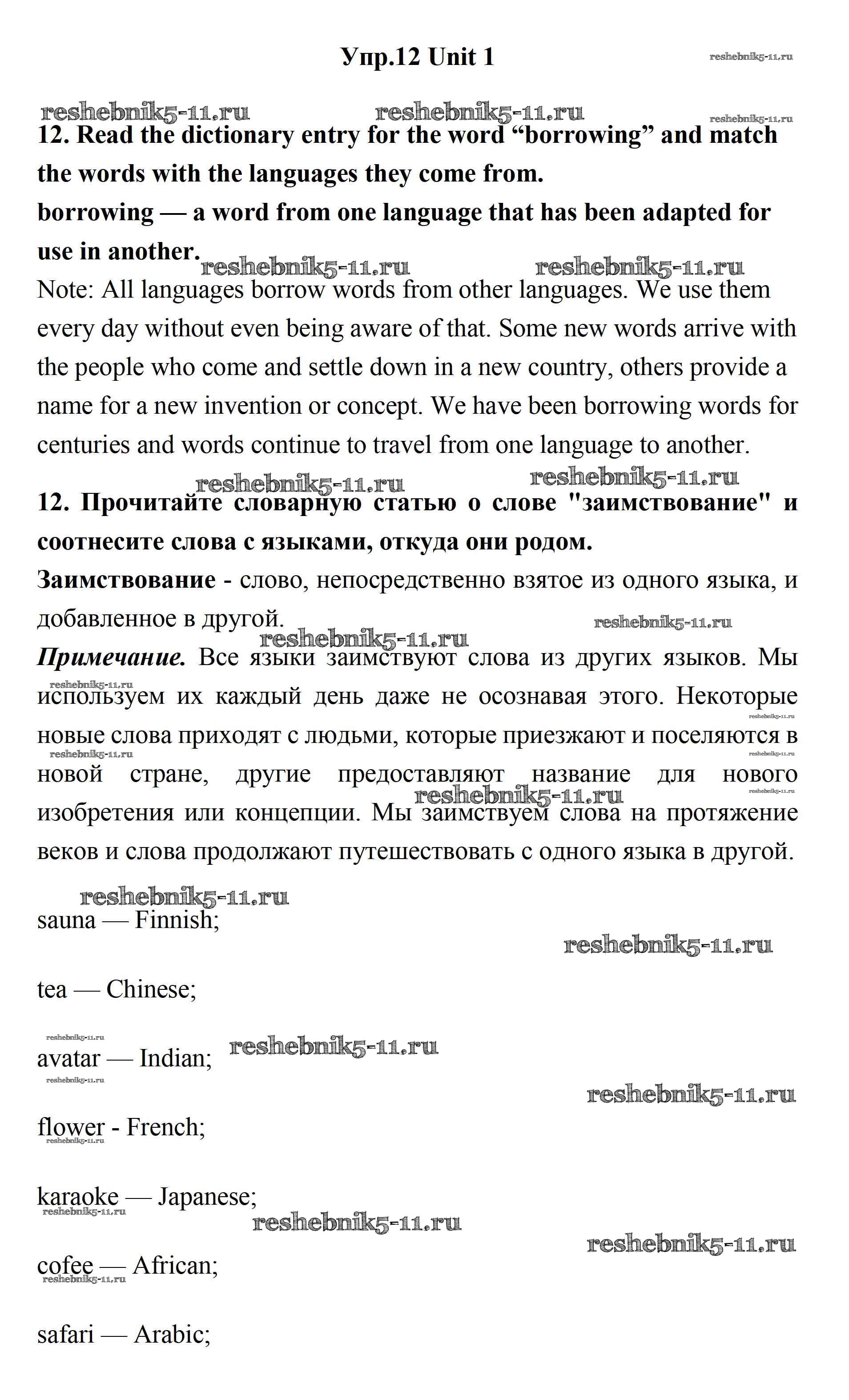 Готовая домашняя работа с ответами по Английскому языку за 11 класс Биболетова, Бабушис, Снежко Учебник Enjoy English Дрофа 2017 ФГОС - Unit 1. Young People in Society 12