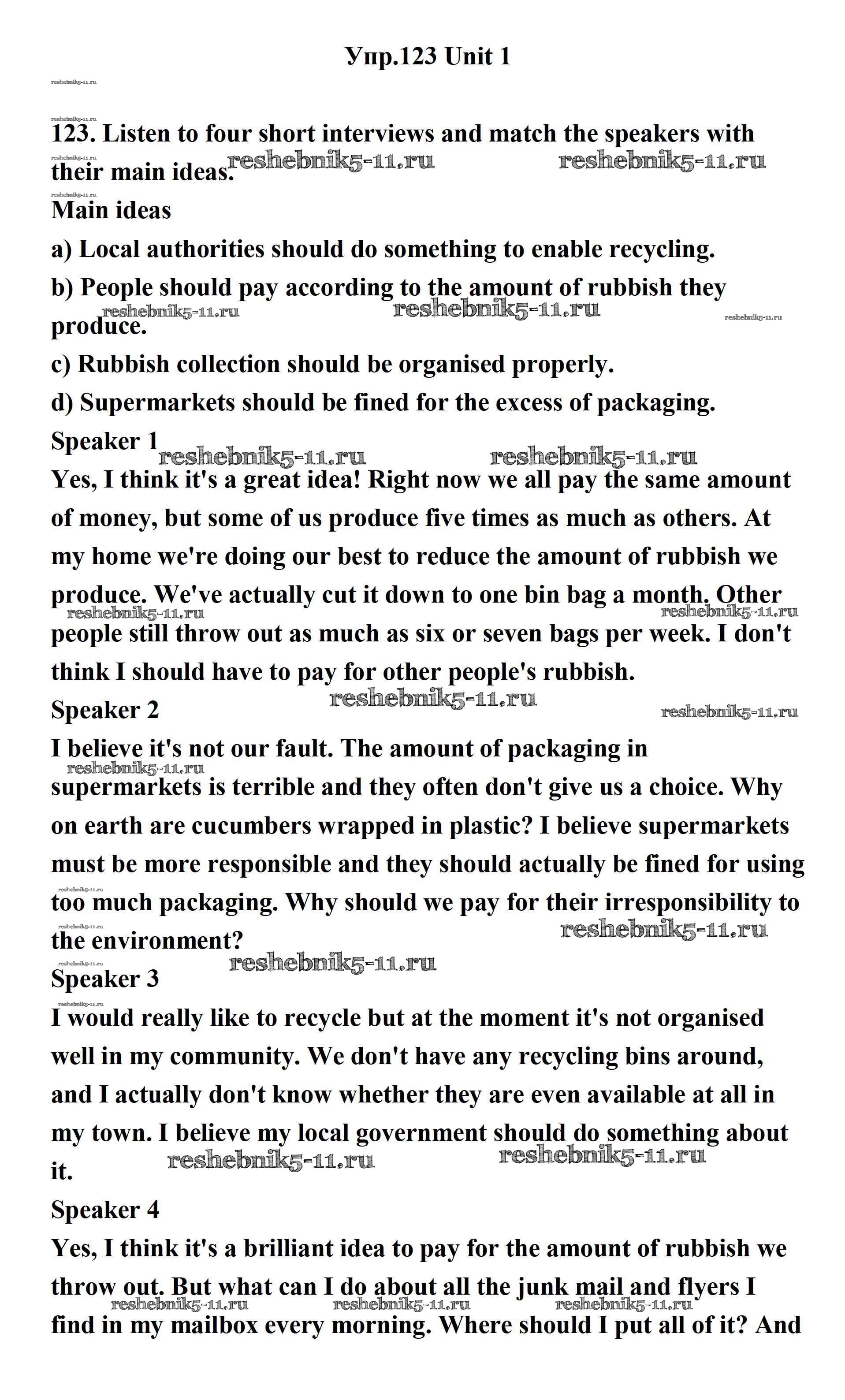 Готовая домашняя работа с ответами по Английскому языку за 11 класс Биболетова, Бабушис, Снежко Учебник Enjoy English Дрофа 2017 ФГОС - Unit 1. Young People in Society 123