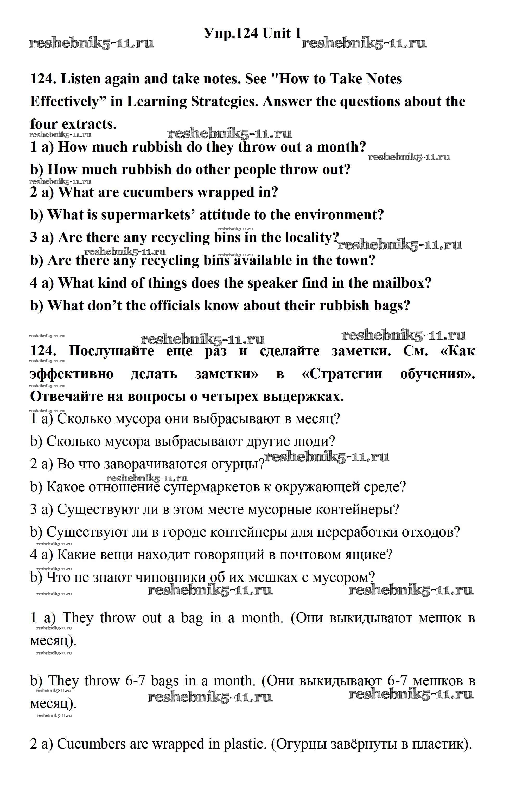 Готовая домашняя работа с ответами по Английскому языку за 11 класс Биболетова, Бабушис, Снежко Учебник Enjoy English Дрофа 2017 ФГОС - Unit 1. Young People in Society 124