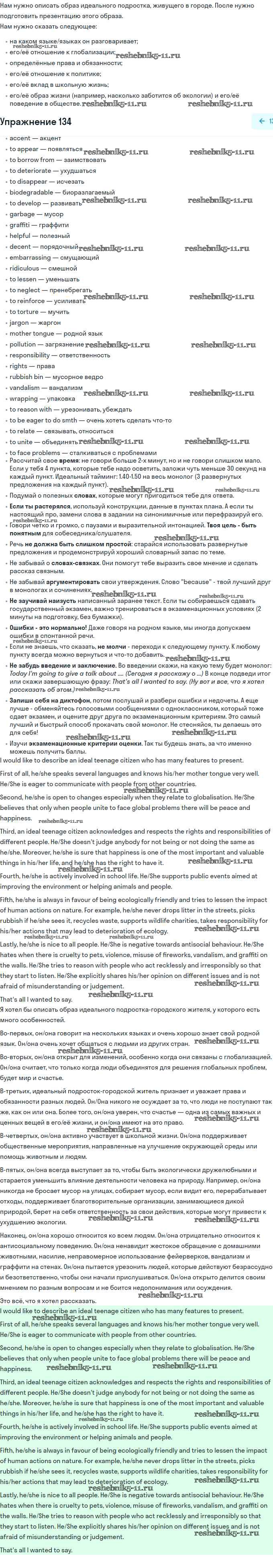 Готовая домашняя работа с ответами по Английскому языку за 11 класс Биболетова, Бабушис, Снежко Учебник Enjoy English Дрофа 2017 ФГОС - Unit 1. Young People in Society 134