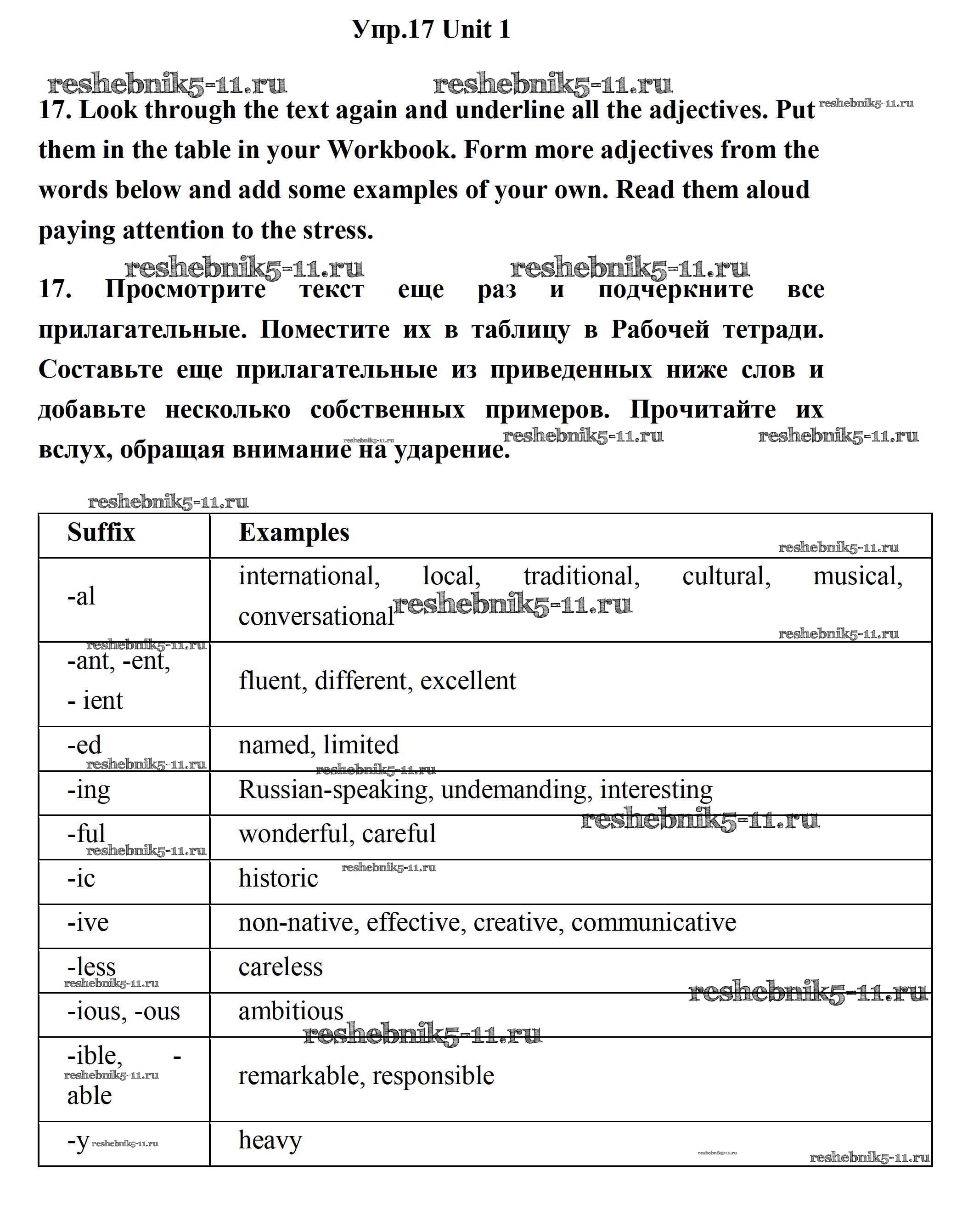 Готовая домашняя работа с ответами по Английскому языку за 11 класс Биболетова, Бабушис, Снежко Учебник Enjoy English Дрофа 2017 ФГОС - Unit 1. Young People in Society 17