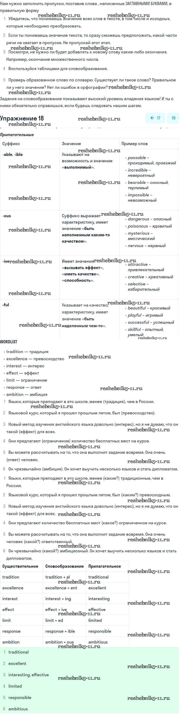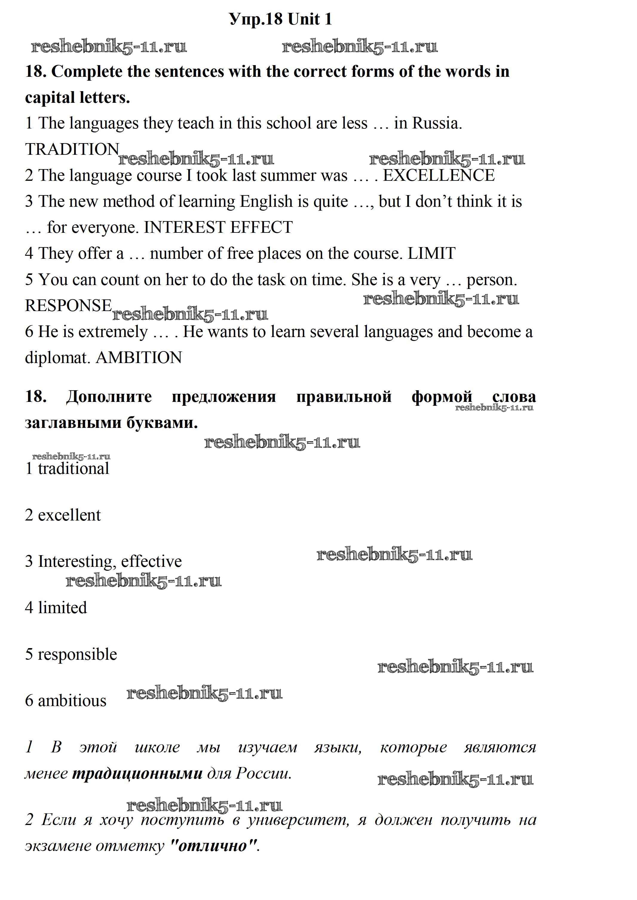 Готовая домашняя работа с ответами по Английскому языку за 11 класс Биболетова, Бабушис, Снежко Учебник Enjoy English Дрофа 2017 ФГОС - Unit 1. Young People in Society 18