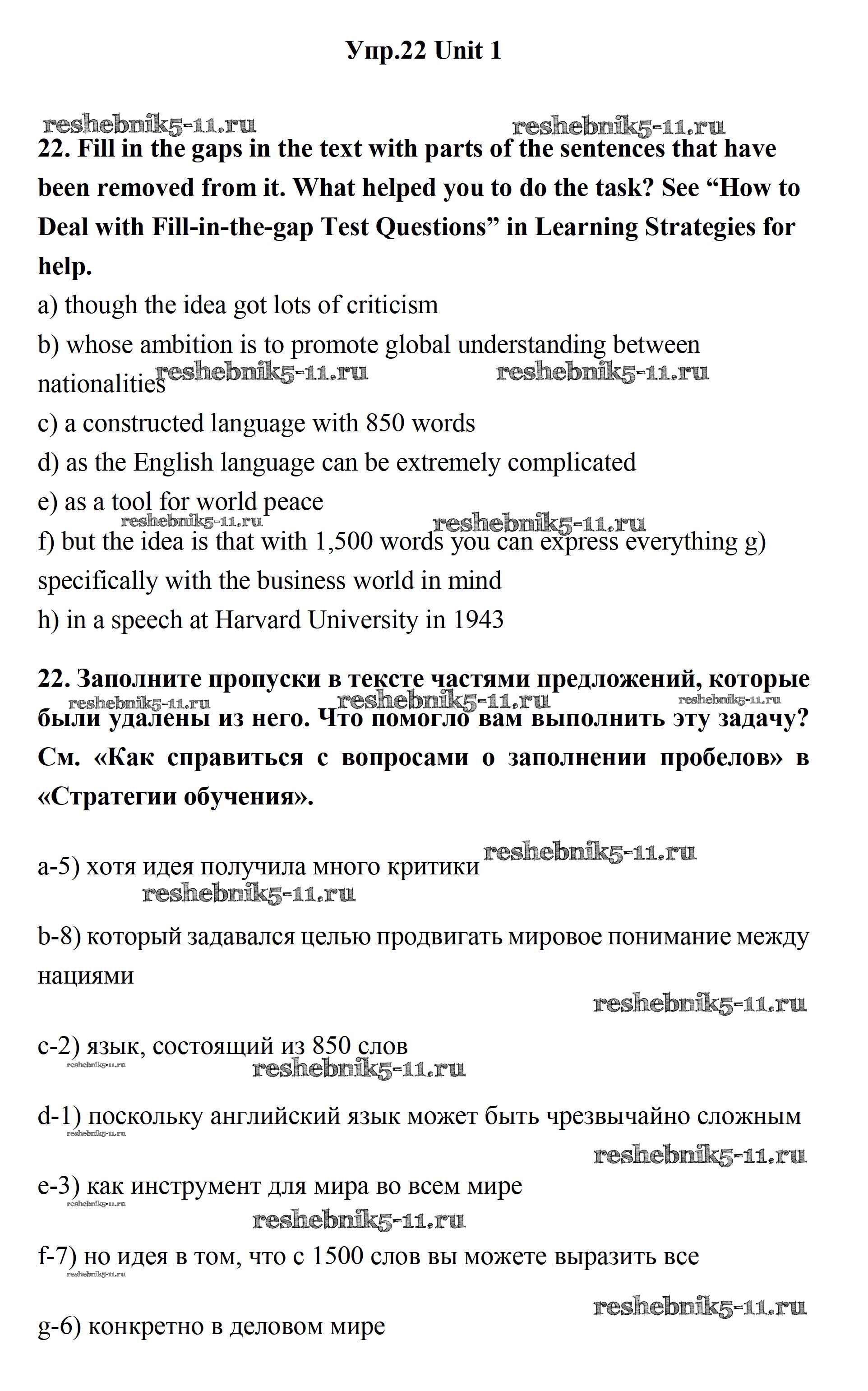 Готовая домашняя работа с ответами по Английскому языку за 11 класс Биболетова, Бабушис, Снежко Учебник Enjoy English Дрофа 2017 ФГОС - Unit 1. Young People in Society 22
