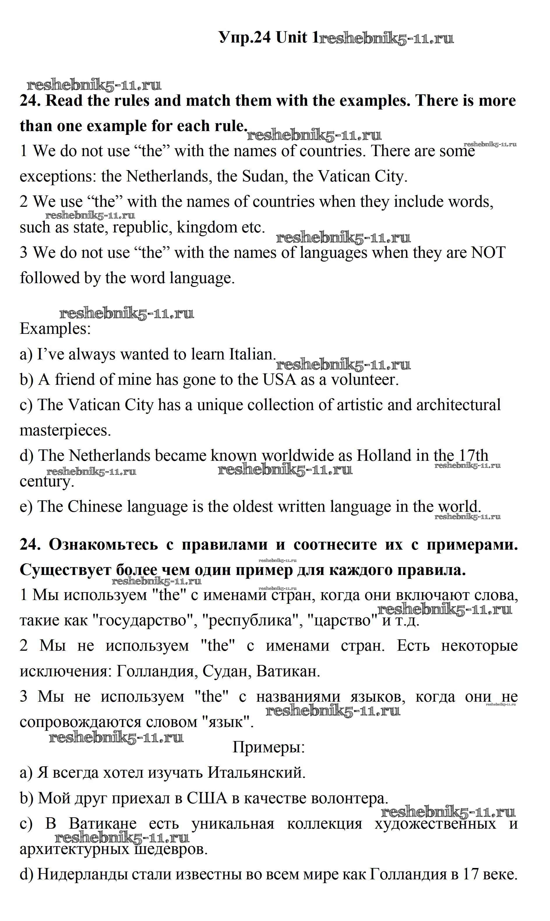 Готовая домашняя работа с ответами по Английскому языку за 11 класс Биболетова, Бабушис, Снежко Учебник Enjoy English Дрофа 2017 ФГОС - Unit 1. Young People in Society 24