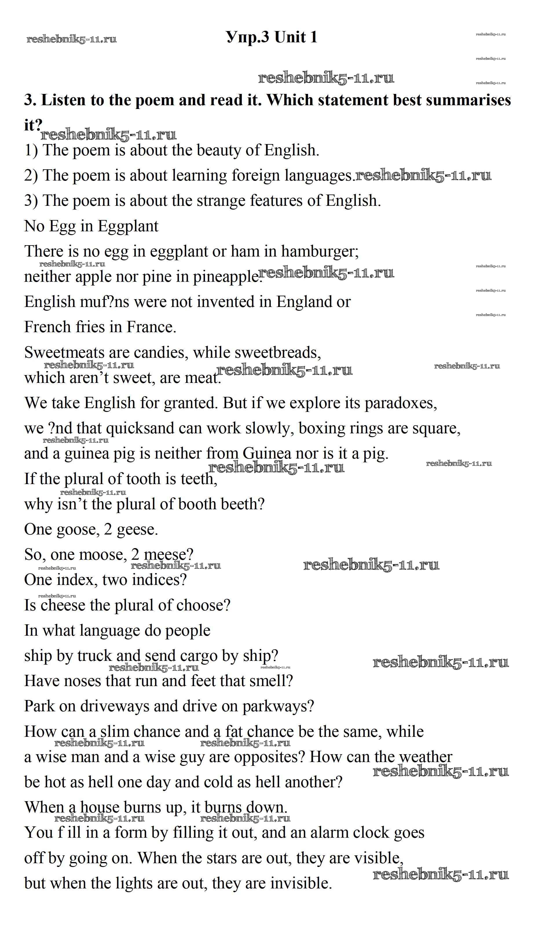 Готовая домашняя работа с ответами по Английскому языку за 11 класс Биболетова, Бабушис, Снежко Учебник Enjoy English Дрофа 2017 ФГОС - Unit 1. Young People in Society 3