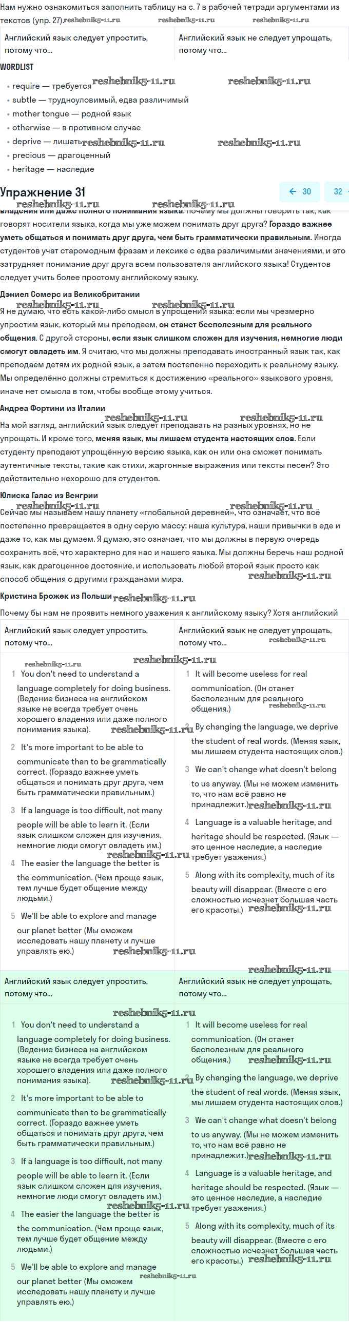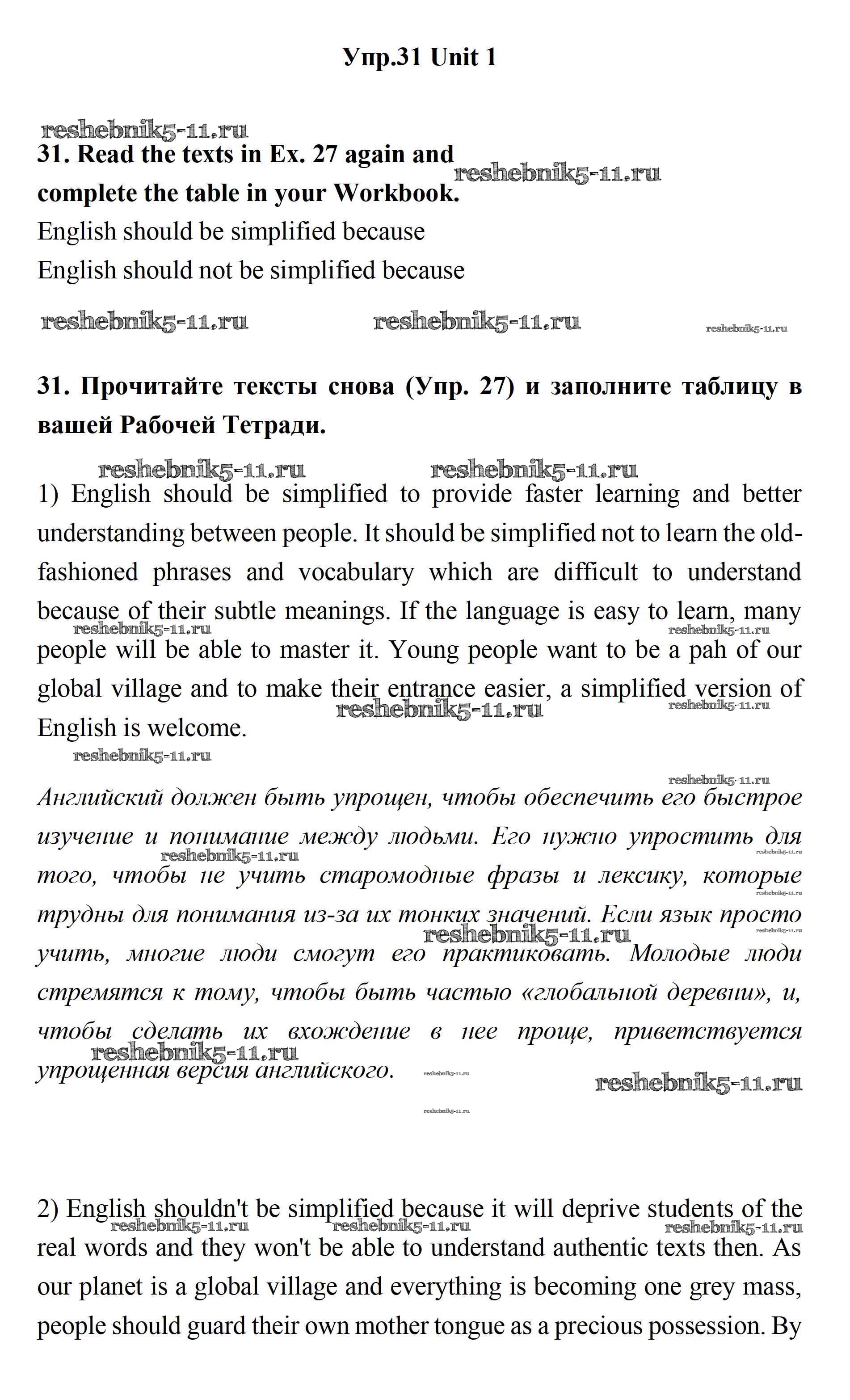 Готовая домашняя работа с ответами по Английскому языку за 11 класс Биболетова, Бабушис, Снежко Учебник Enjoy English Дрофа 2017 ФГОС - Unit 1. Young People in Society 31