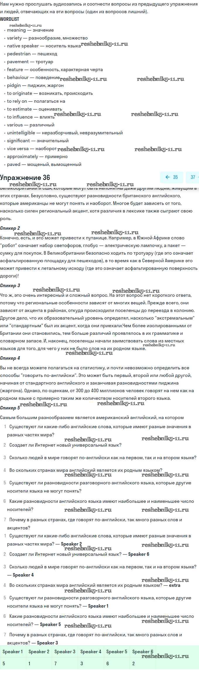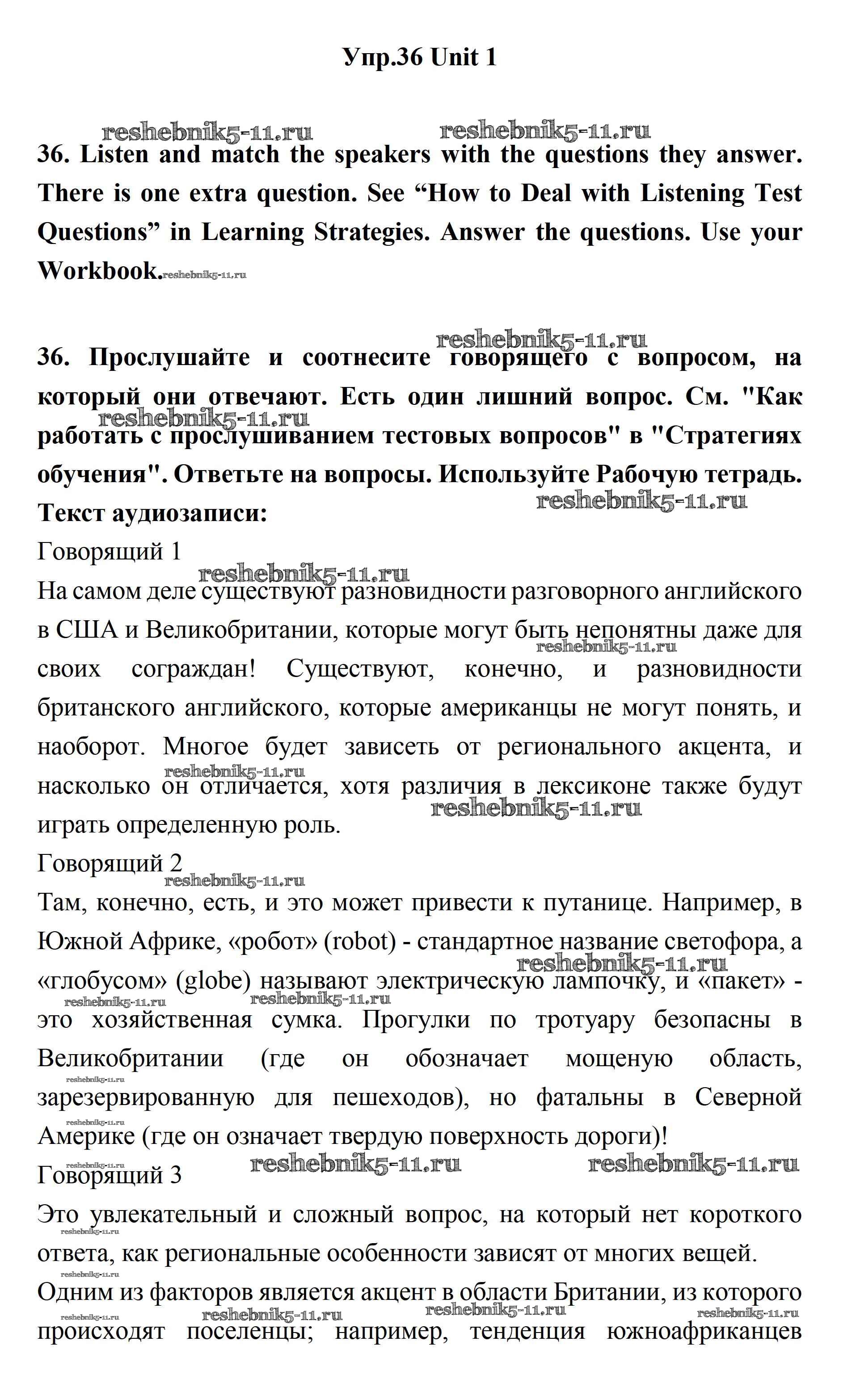 Готовая домашняя работа с ответами по Английскому языку за 11 класс Биболетова, Бабушис, Снежко Учебник Enjoy English Дрофа 2017 ФГОС - Unit 1. Young People in Society 36