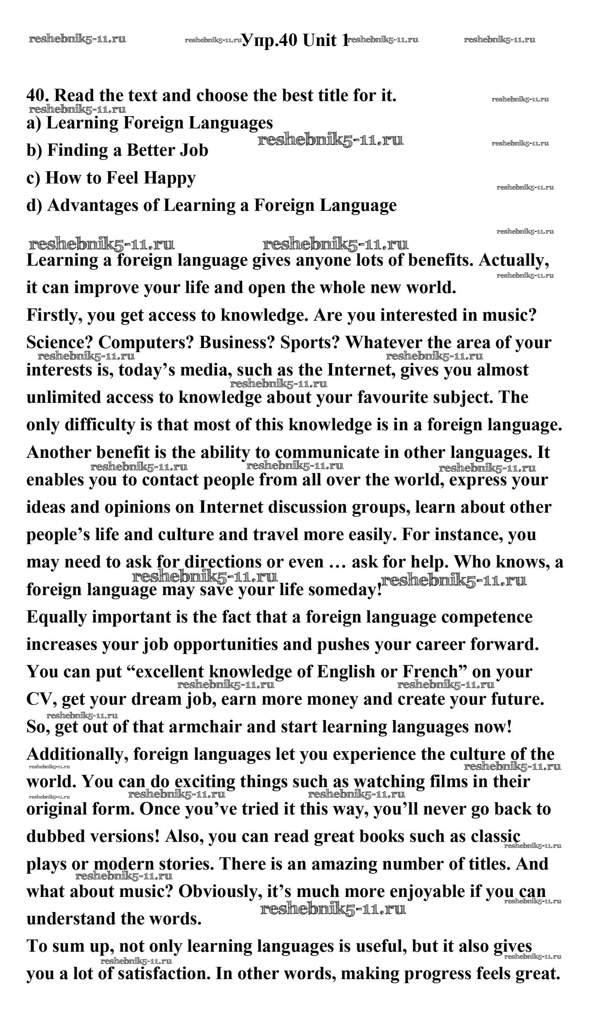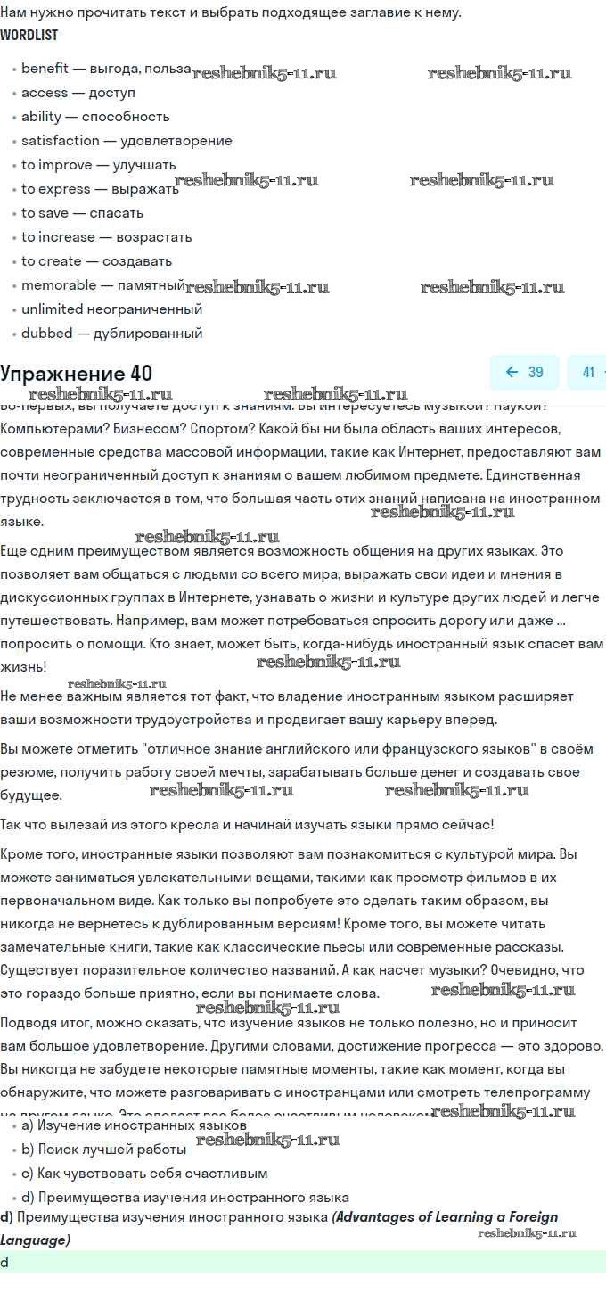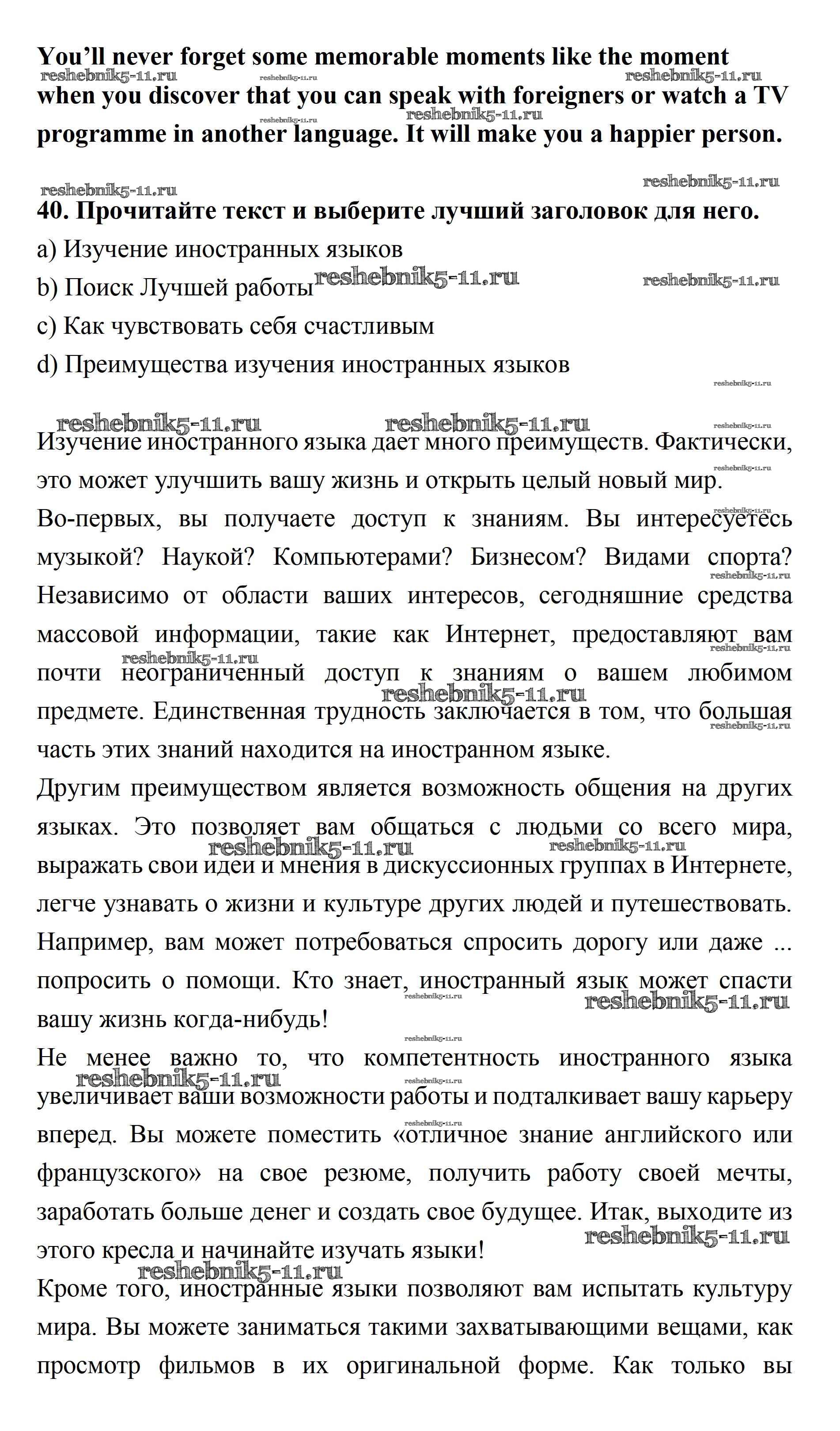Готовая домашняя работа с ответами по Английскому языку за 11 класс Биболетова, Бабушис, Снежко Учебник Enjoy English Дрофа 2017 ФГОС - Unit 1. Young People in Society 40