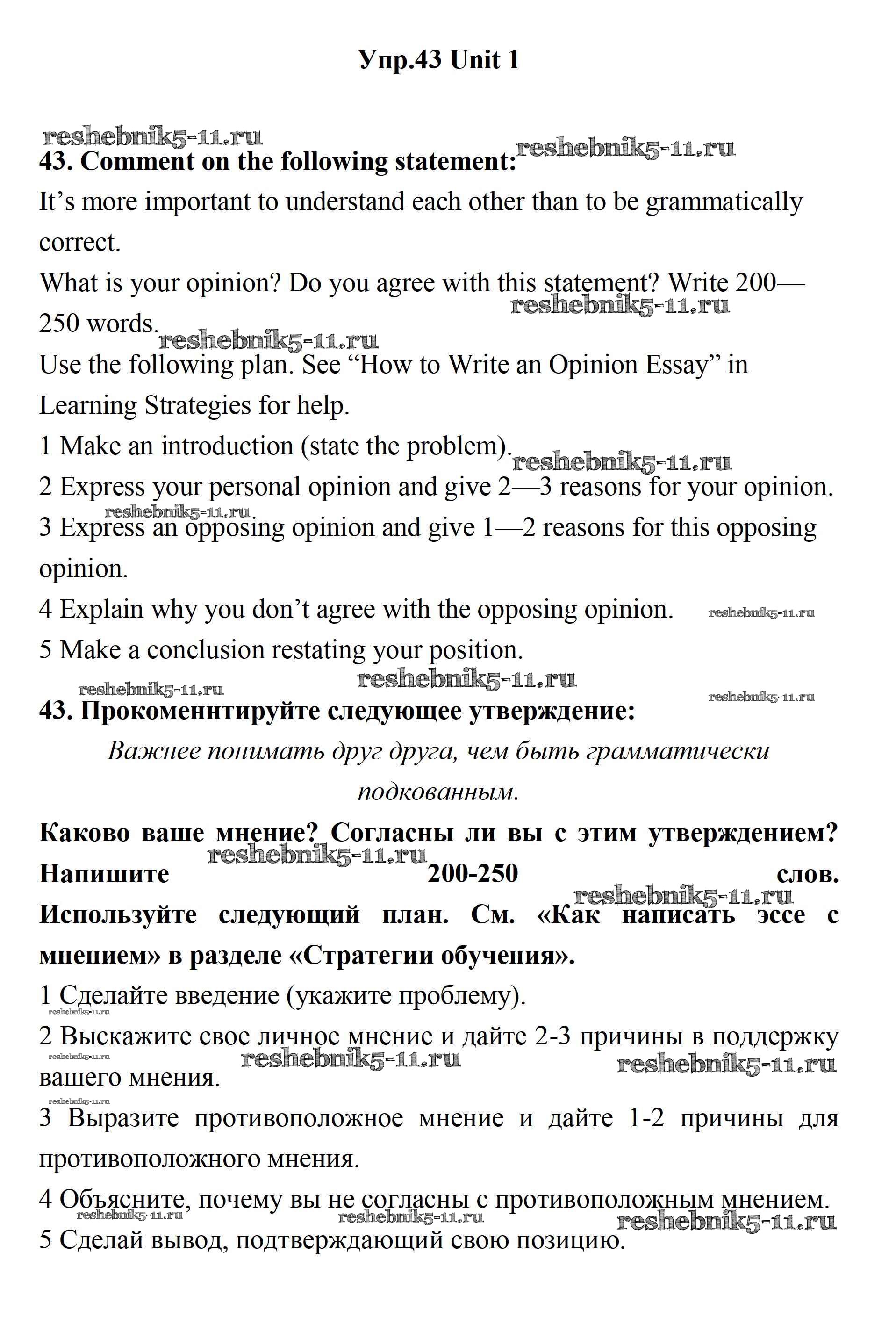 Готовая домашняя работа с ответами по Английскому языку за 11 класс Биболетова, Бабушис, Снежко Учебник Enjoy English Дрофа 2017 ФГОС - Unit 1. Young People in Society 43
