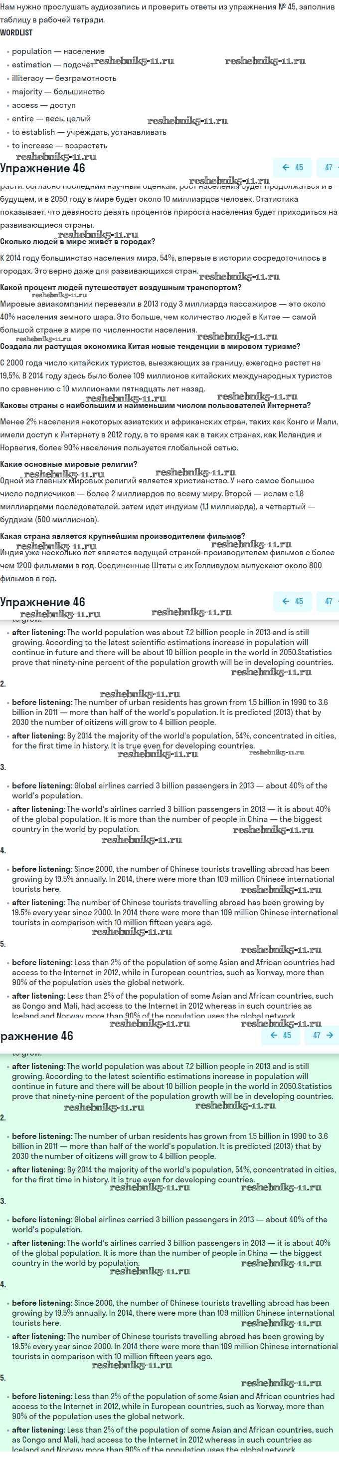 Готовая домашняя работа с ответами по Английскому языку за 11 класс Биболетова, Бабушис, Снежко Учебник Enjoy English Дрофа 2017 ФГОС - Unit 1. Young People in Society 46