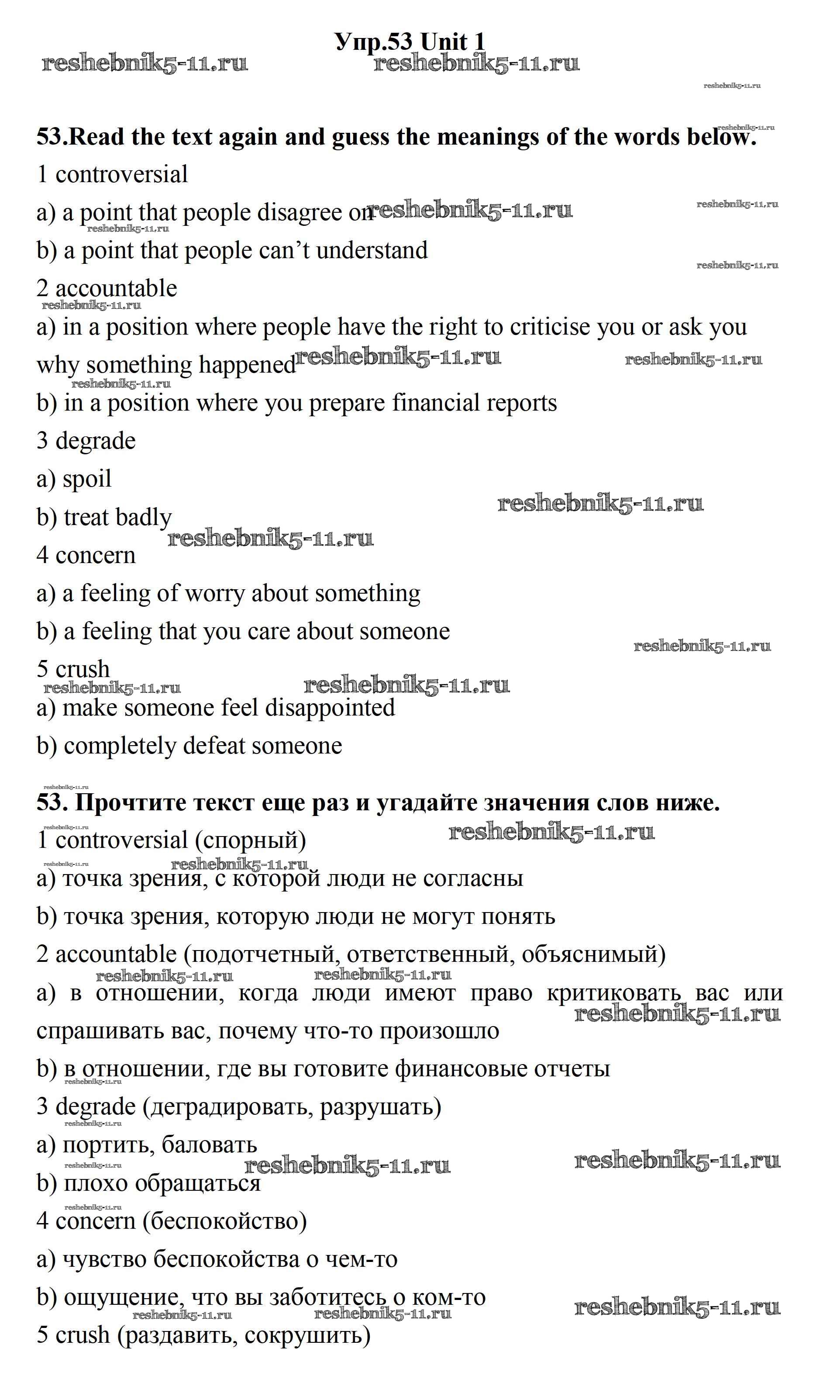 Готовая домашняя работа с ответами по Английскому языку за 11 класс Биболетова, Бабушис, Снежко Учебник Enjoy English Дрофа 2017 ФГОС - Unit 1. Young People in Society 53