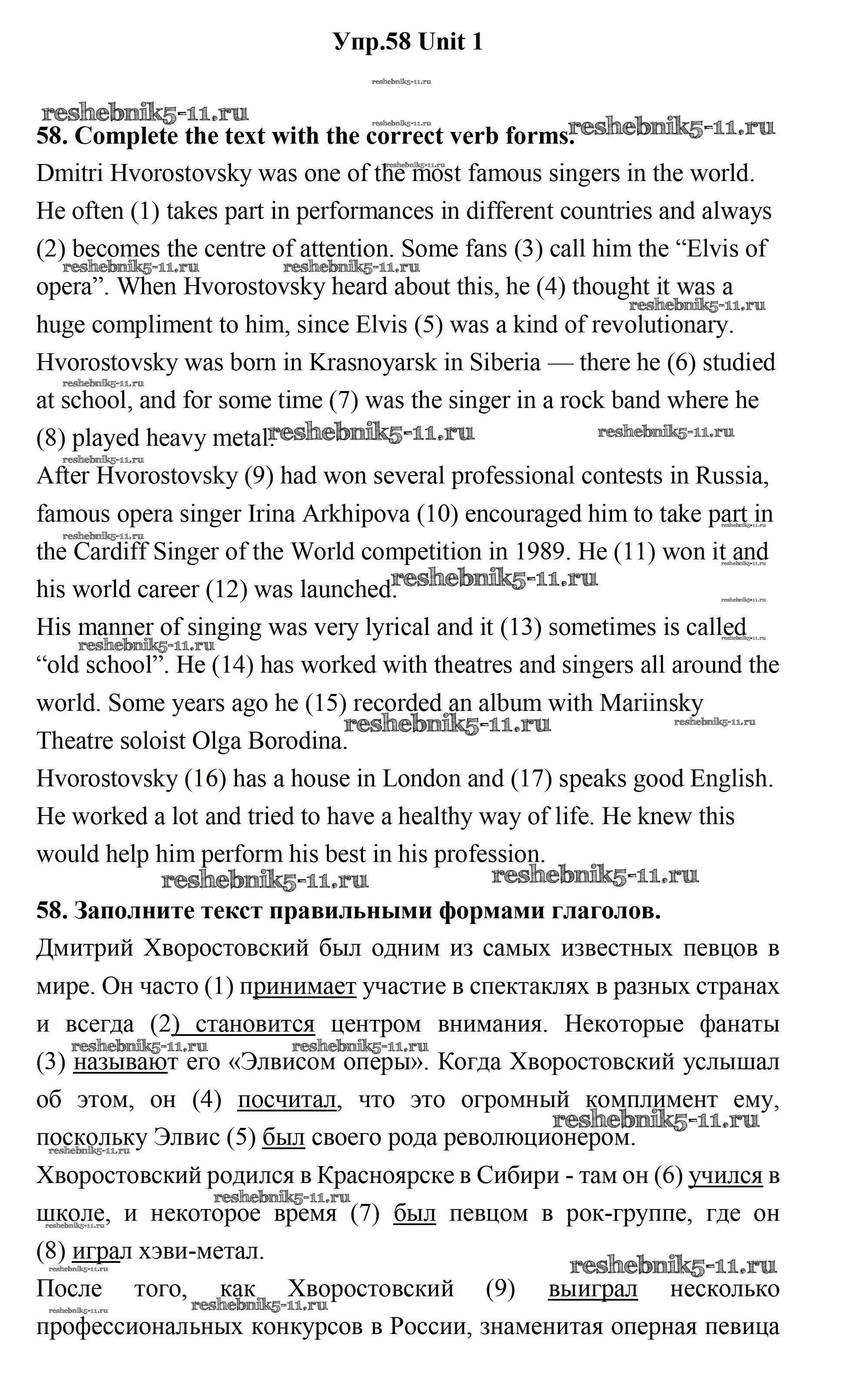 Готовая домашняя работа с ответами по Английскому языку за 11 класс Биболетова, Бабушис, Снежко Учебник Enjoy English Дрофа 2017 ФГОС - Unit 1. Young People in Society 58