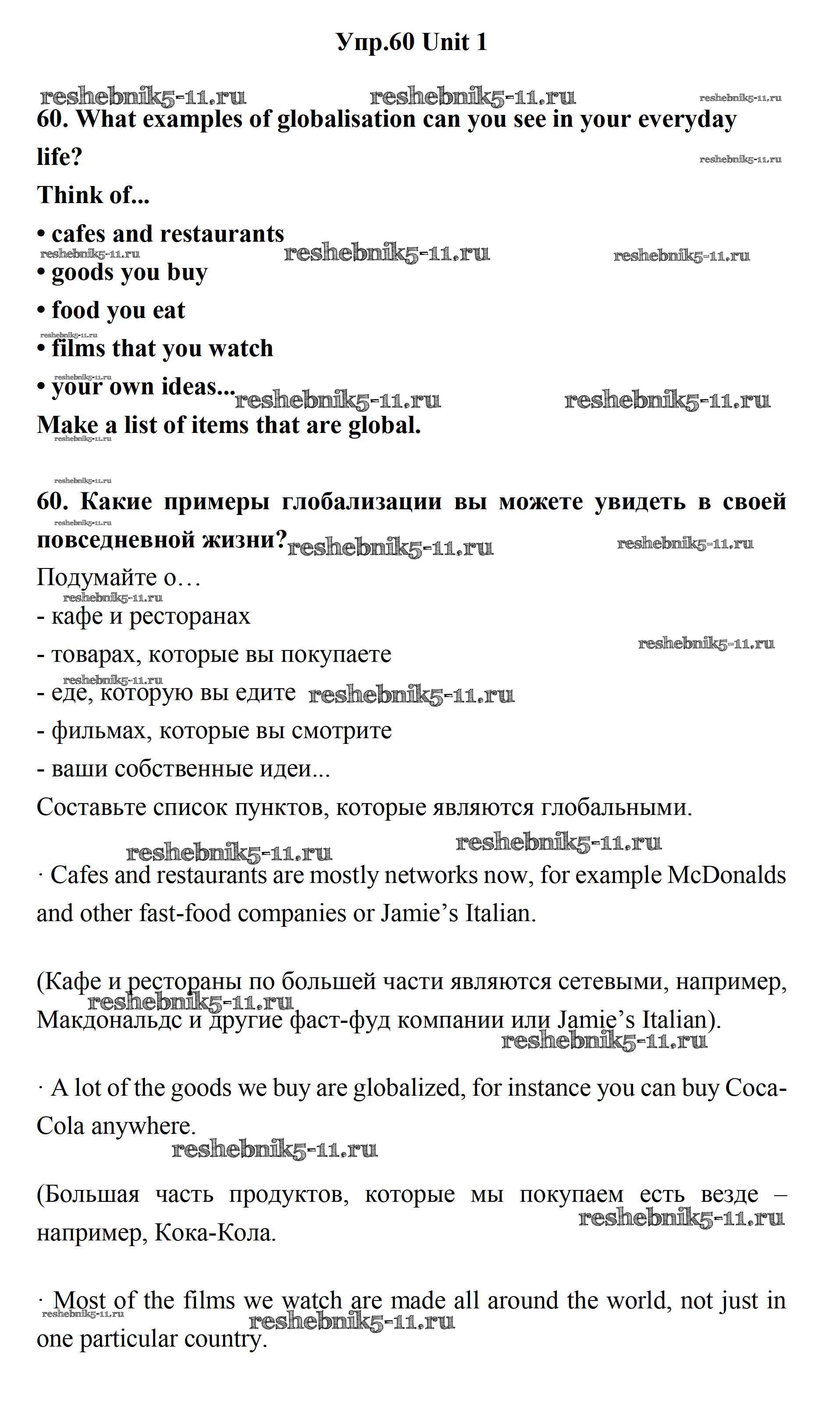 Готовая домашняя работа с ответами по Английскому языку за 11 класс Биболетова, Бабушис, Снежко Учебник Enjoy English Дрофа 2017 ФГОС - Unit 1. Young People in Society 60