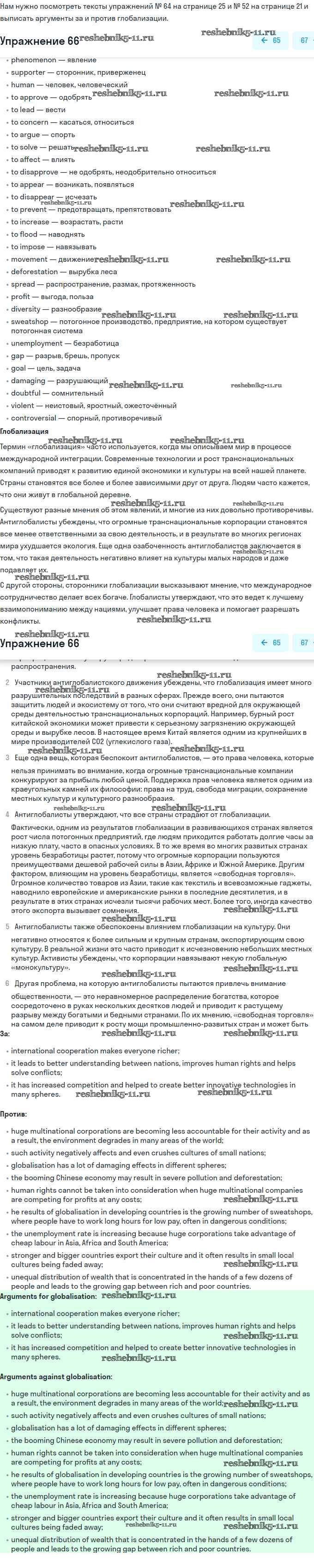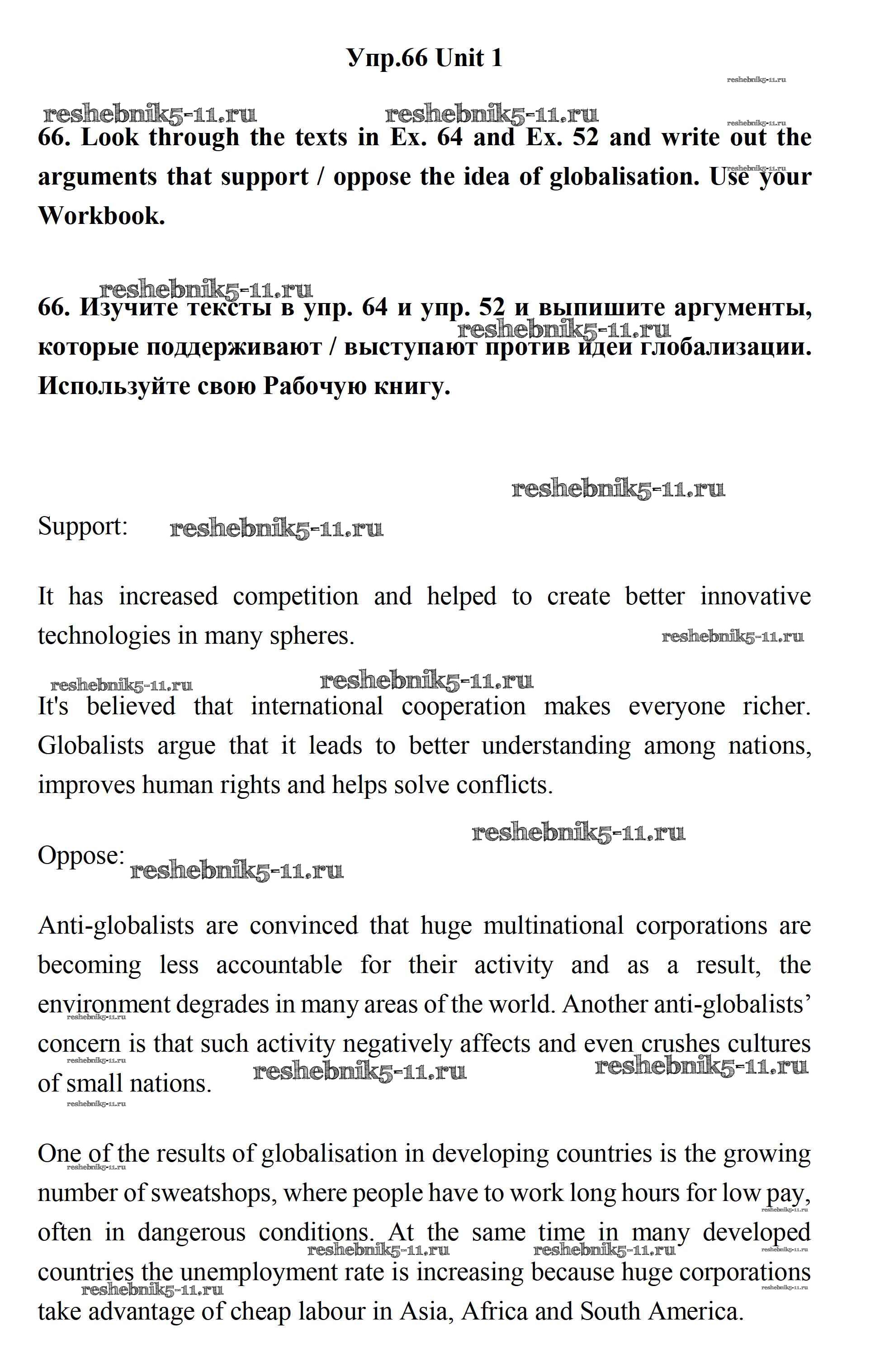 Готовая домашняя работа с ответами по Английскому языку за 11 класс Биболетова, Бабушис, Снежко Учебник Enjoy English Дрофа 2017 ФГОС - Unit 1. Young People in Society 66