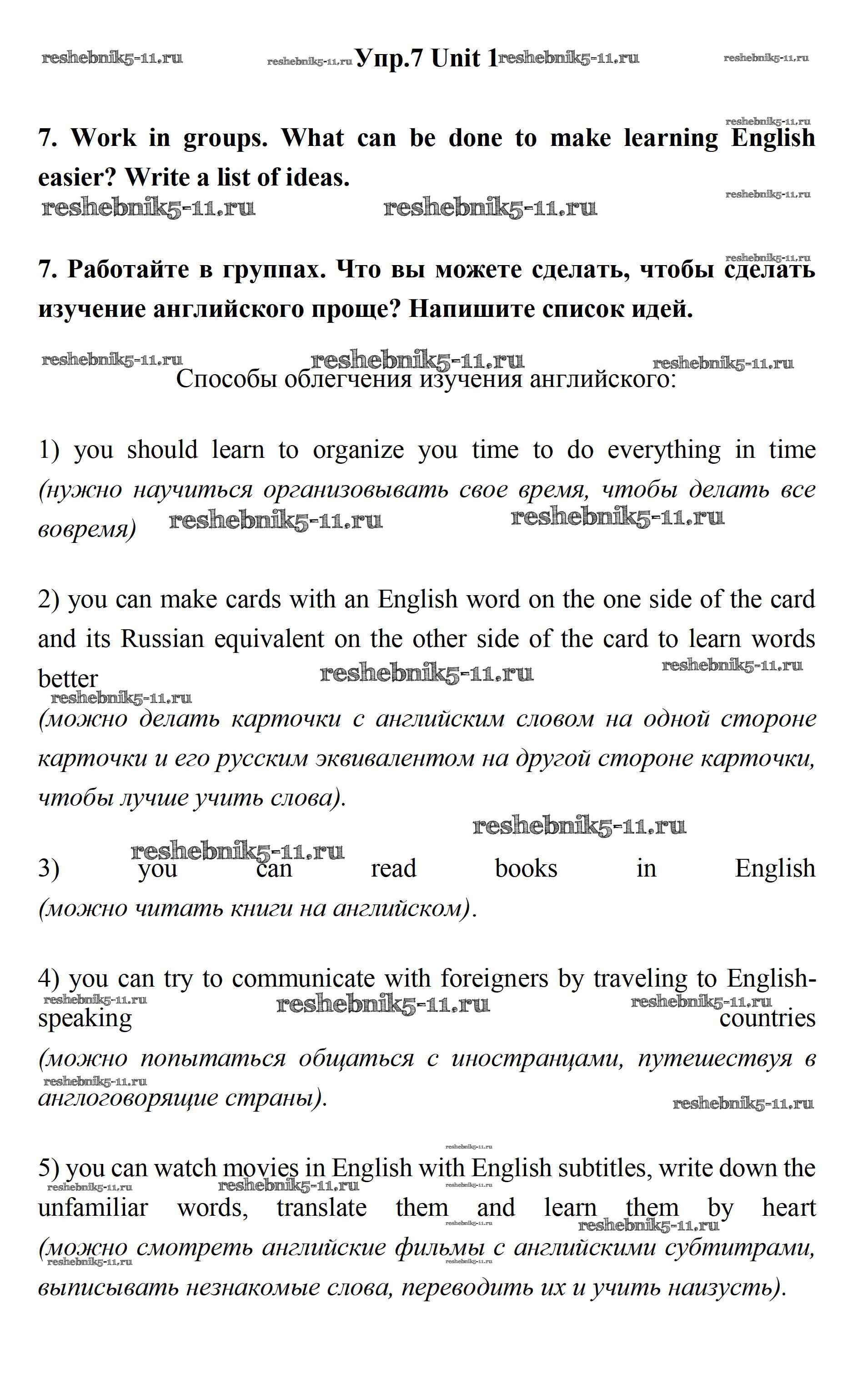 Готовая домашняя работа с ответами по Английскому языку за 11 класс Биболетова, Бабушис, Снежко Учебник Enjoy English Дрофа 2017 ФГОС - Unit 1. Young People in Society 7