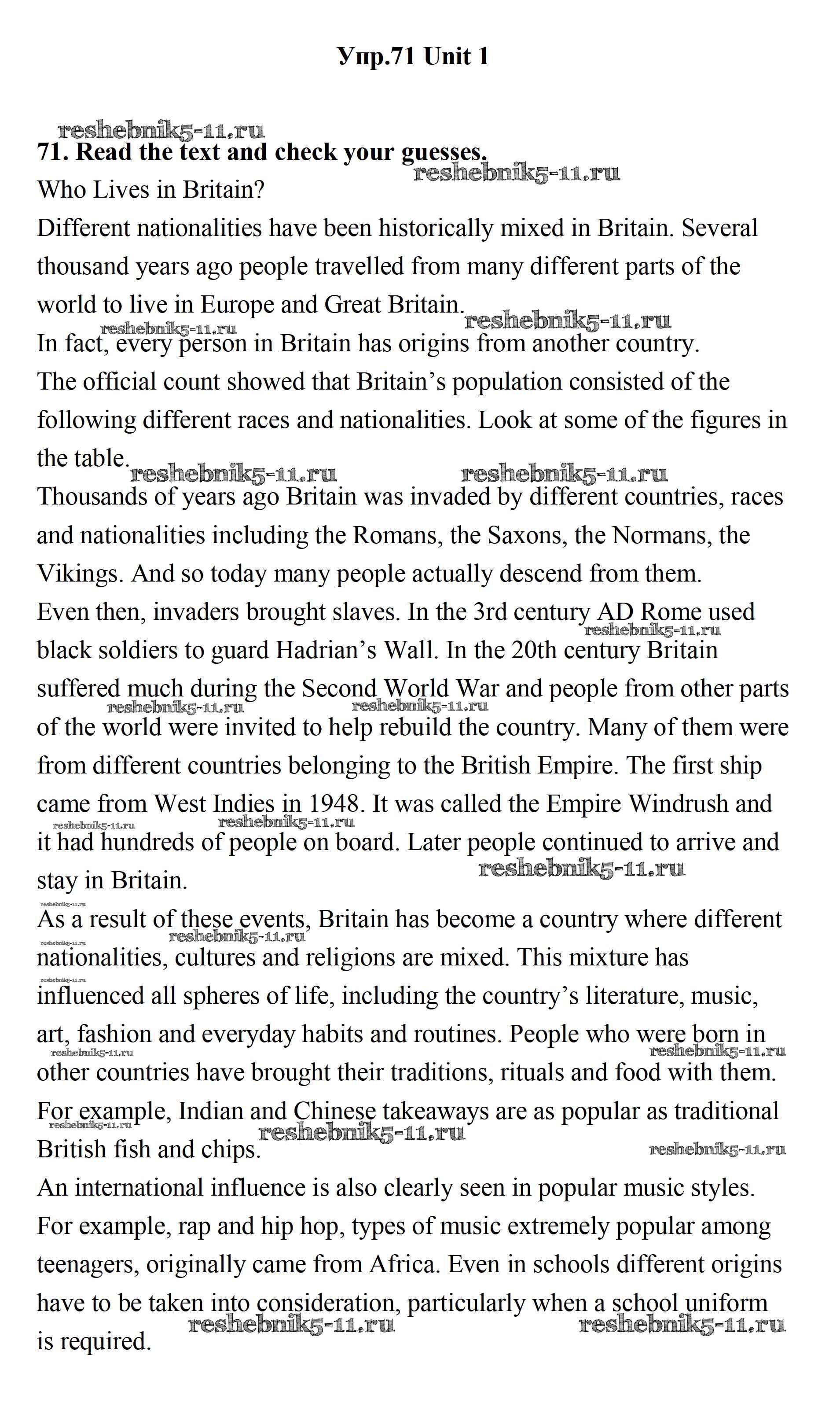 Готовая домашняя работа с ответами по Английскому языку за 11 класс Биболетова, Бабушис, Снежко Учебник Enjoy English Дрофа 2017 ФГОС - Unit 1. Young People in Society 71