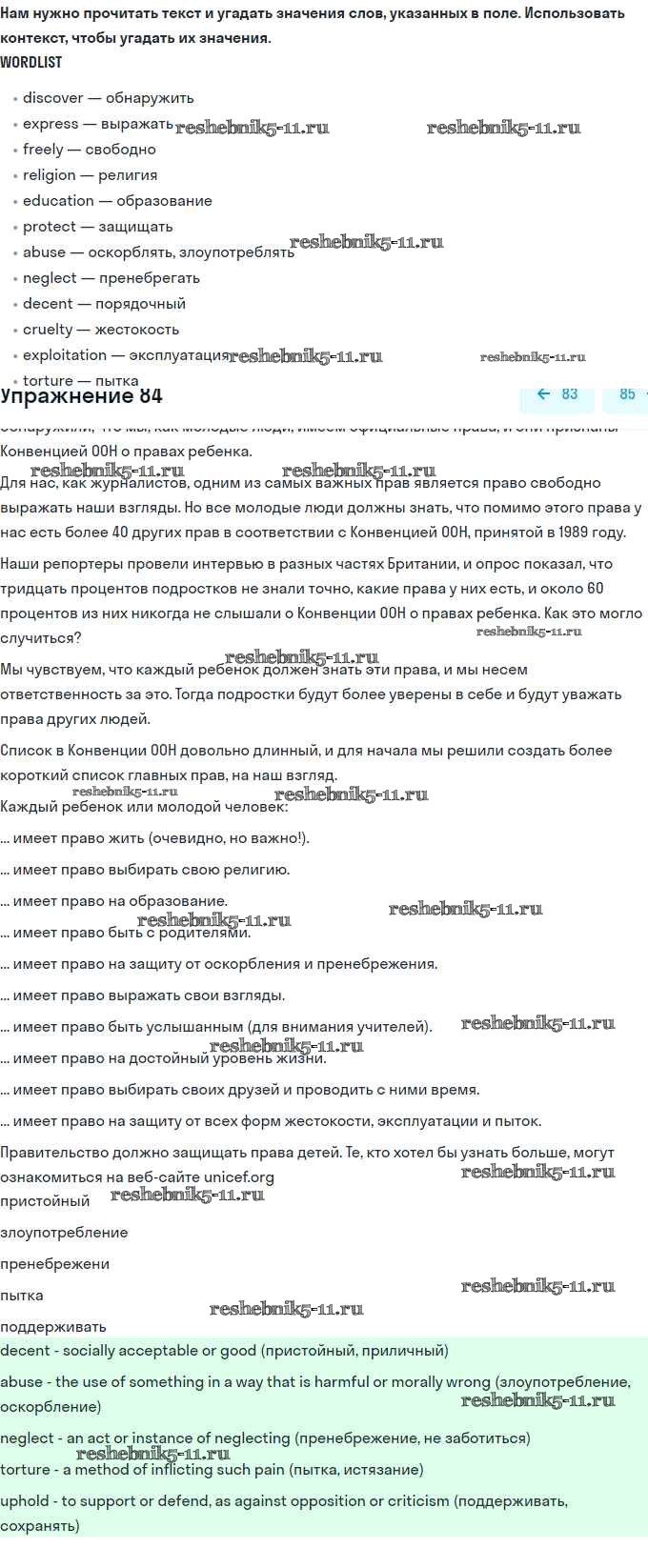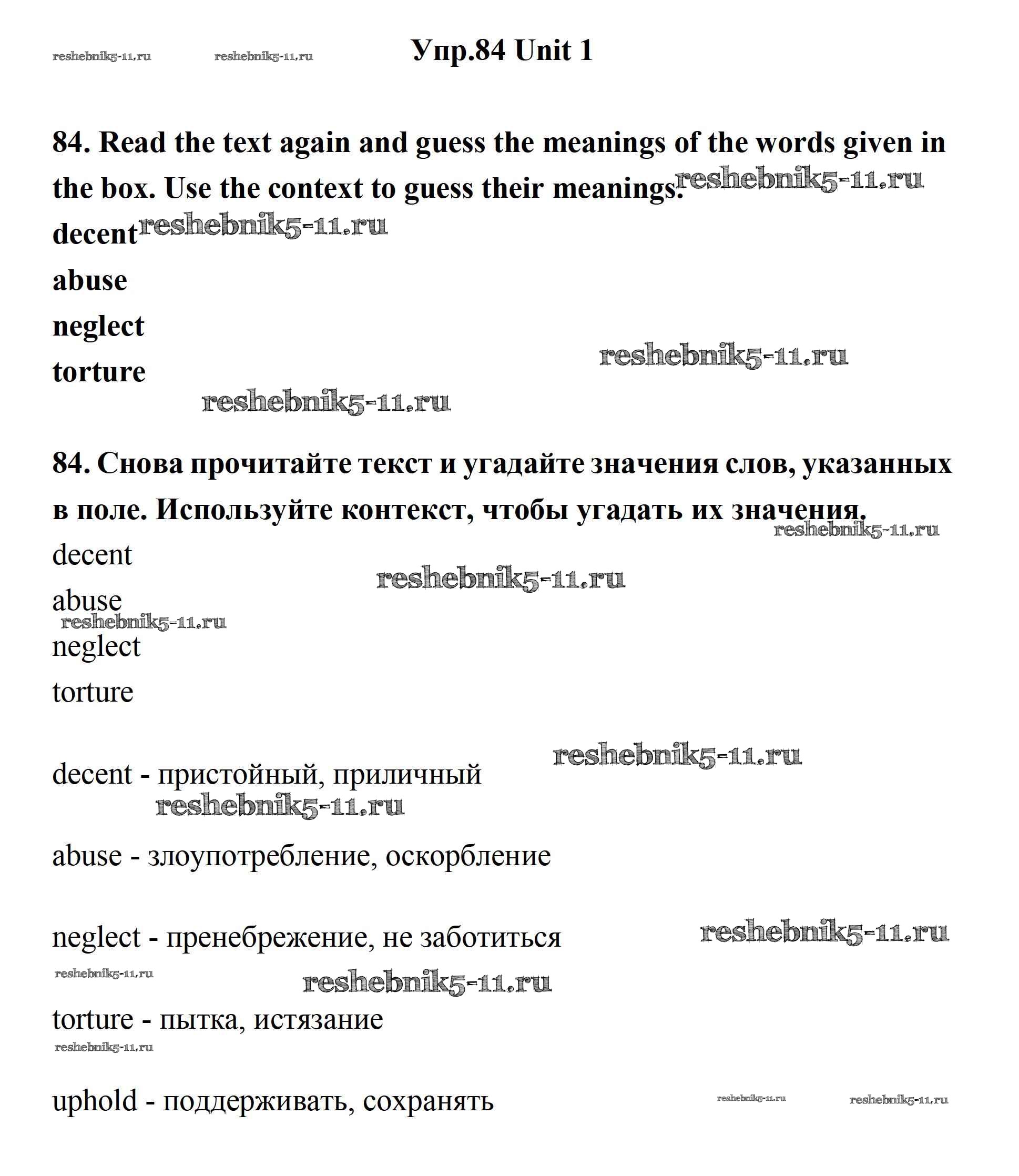 Готовая домашняя работа с ответами по Английскому языку за 11 класс Биболетова, Бабушис, Снежко Учебник Enjoy English Дрофа 2017 ФГОС - Unit 1. Young People in Society 84