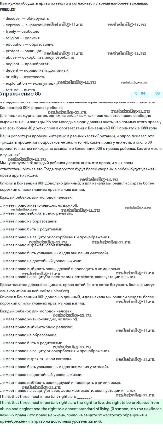 Готовая домашняя работа с ответами по Английскому языку за 11 класс Биболетова, Бабушис, Снежко Учебник Enjoy English Дрофа 2017 ФГОС - Unit 1. Young People in Society 85