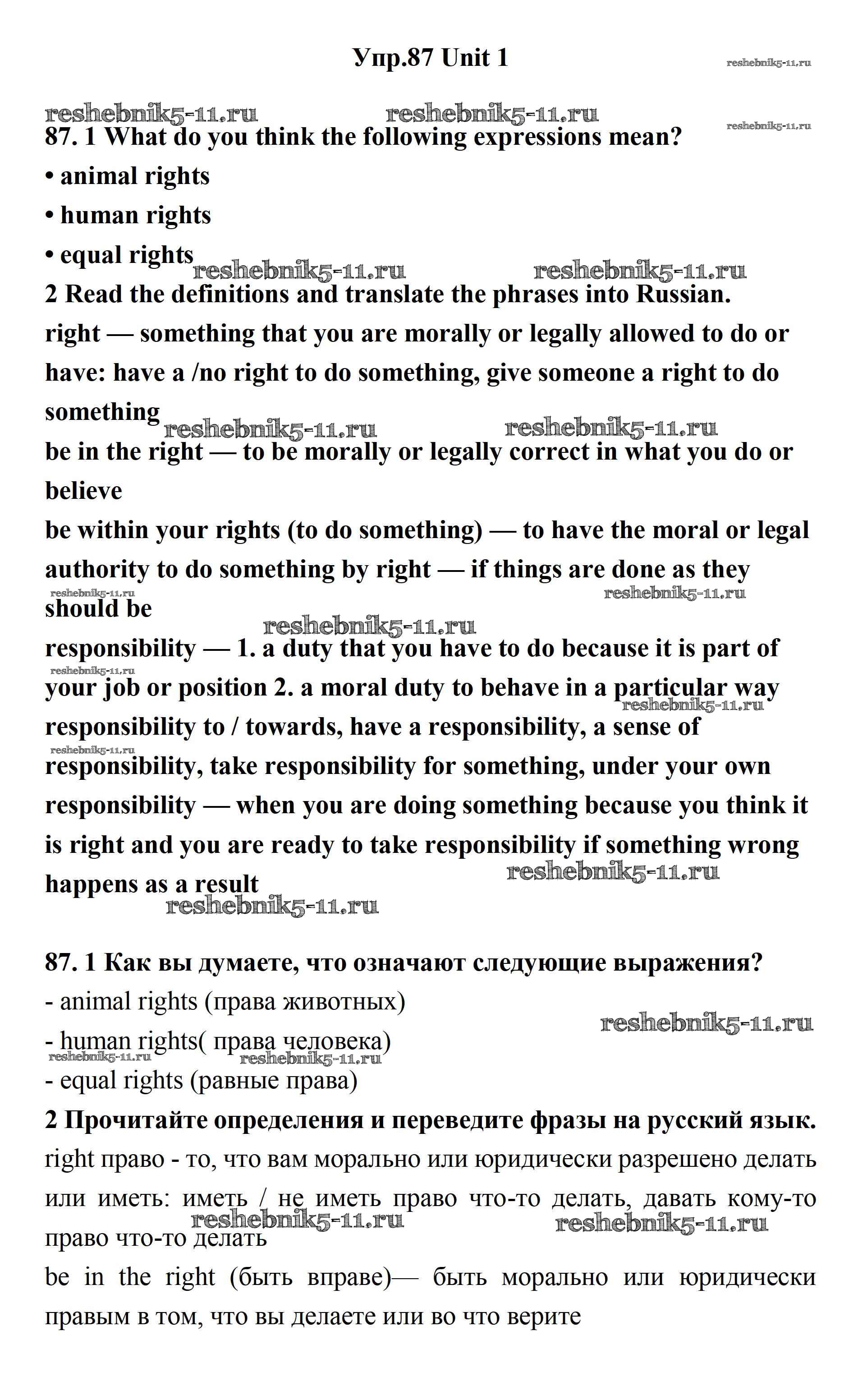 Готовая домашняя работа с ответами по Английскому языку за 11 класс Биболетова, Бабушис, Снежко Учебник Enjoy English Дрофа 2017 ФГОС - Unit 1. Young People in Society 87