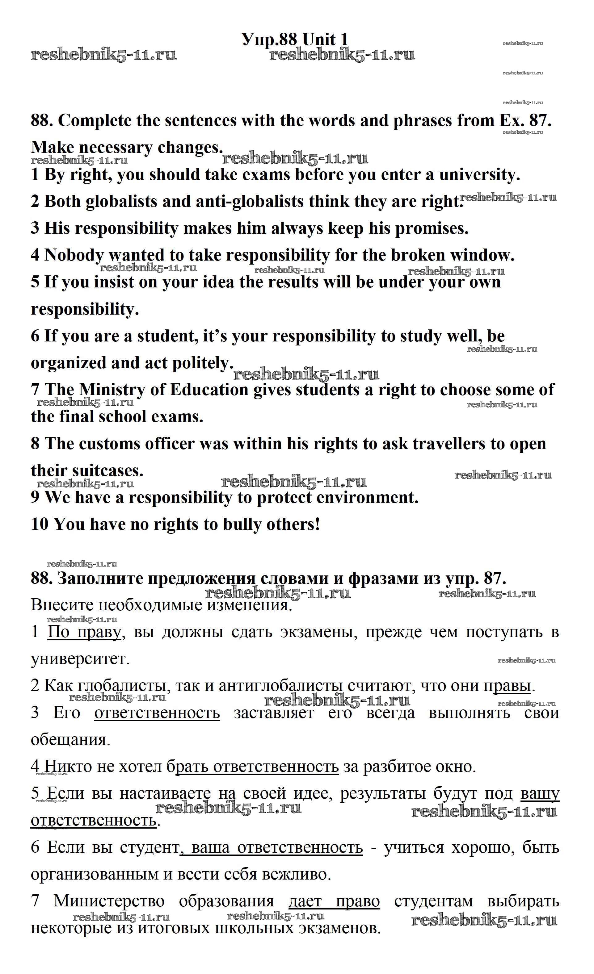 Готовая домашняя работа с ответами по Английскому языку за 11 класс Биболетова, Бабушис, Снежко Учебник Enjoy English Дрофа 2017 ФГОС - Unit 1. Young People in Society 88