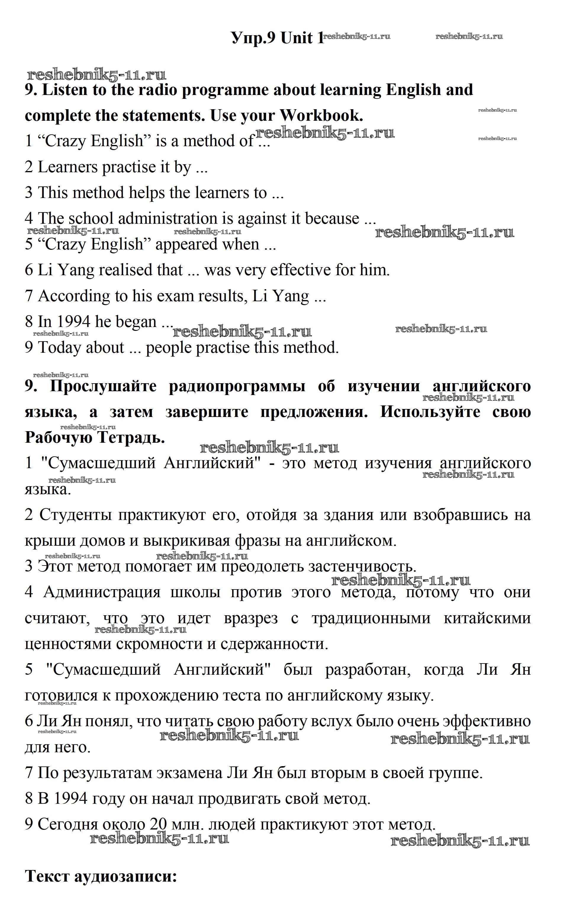 Готовая домашняя работа с ответами по Английскому языку за 11 класс Биболетова, Бабушис, Снежко Учебник Enjoy English Дрофа 2017 ФГОС - Unit 1. Young People in Society 9