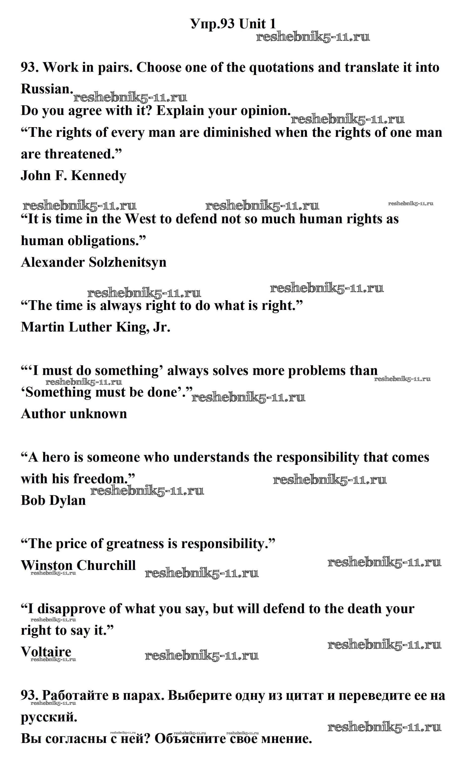 Готовая домашняя работа с ответами по Английскому языку за 11 класс Биболетова, Бабушис, Снежко Учебник Enjoy English Дрофа 2017 ФГОС - Unit 1. Young People in Society 93