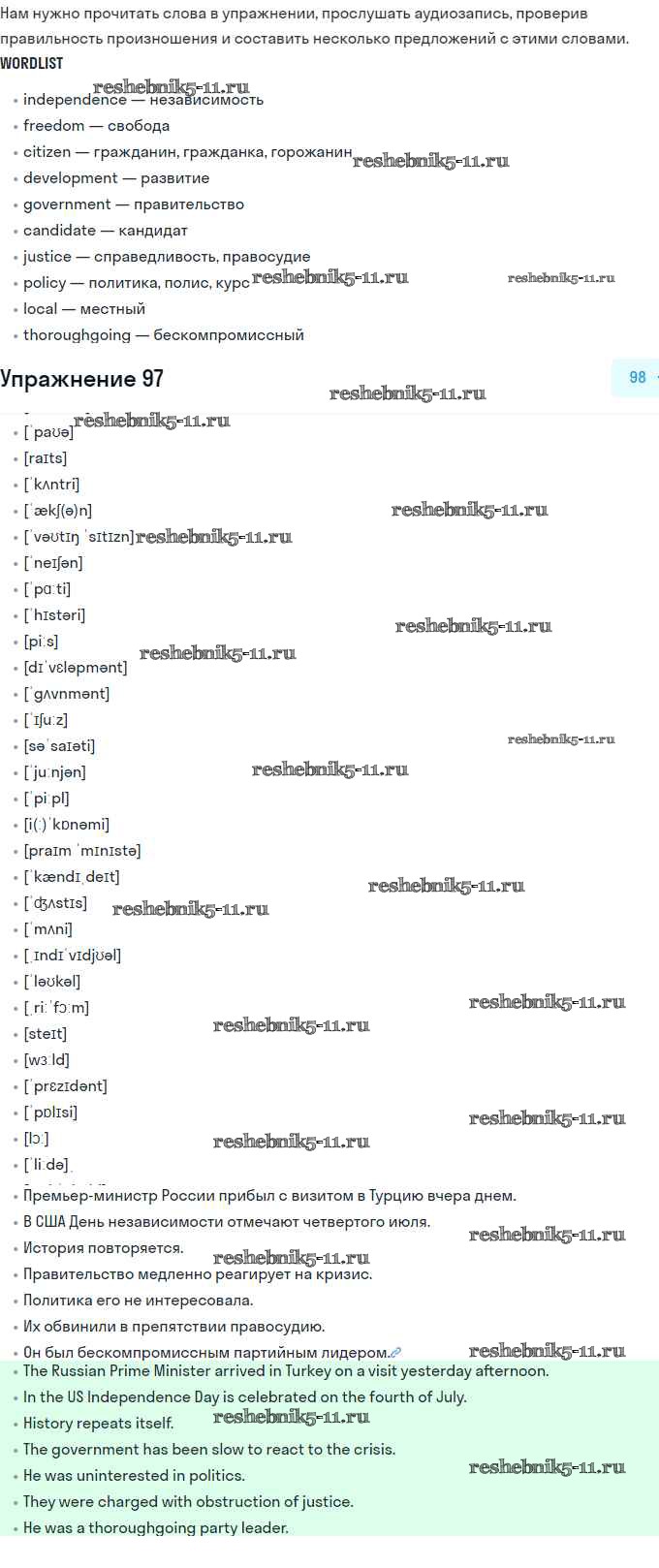 Готовая домашняя работа с ответами по Английскому языку за 11 класс Биболетова, Бабушис, Снежко Учебник Enjoy English Дрофа 2017 ФГОС - Unit 1. Young People in Society 97