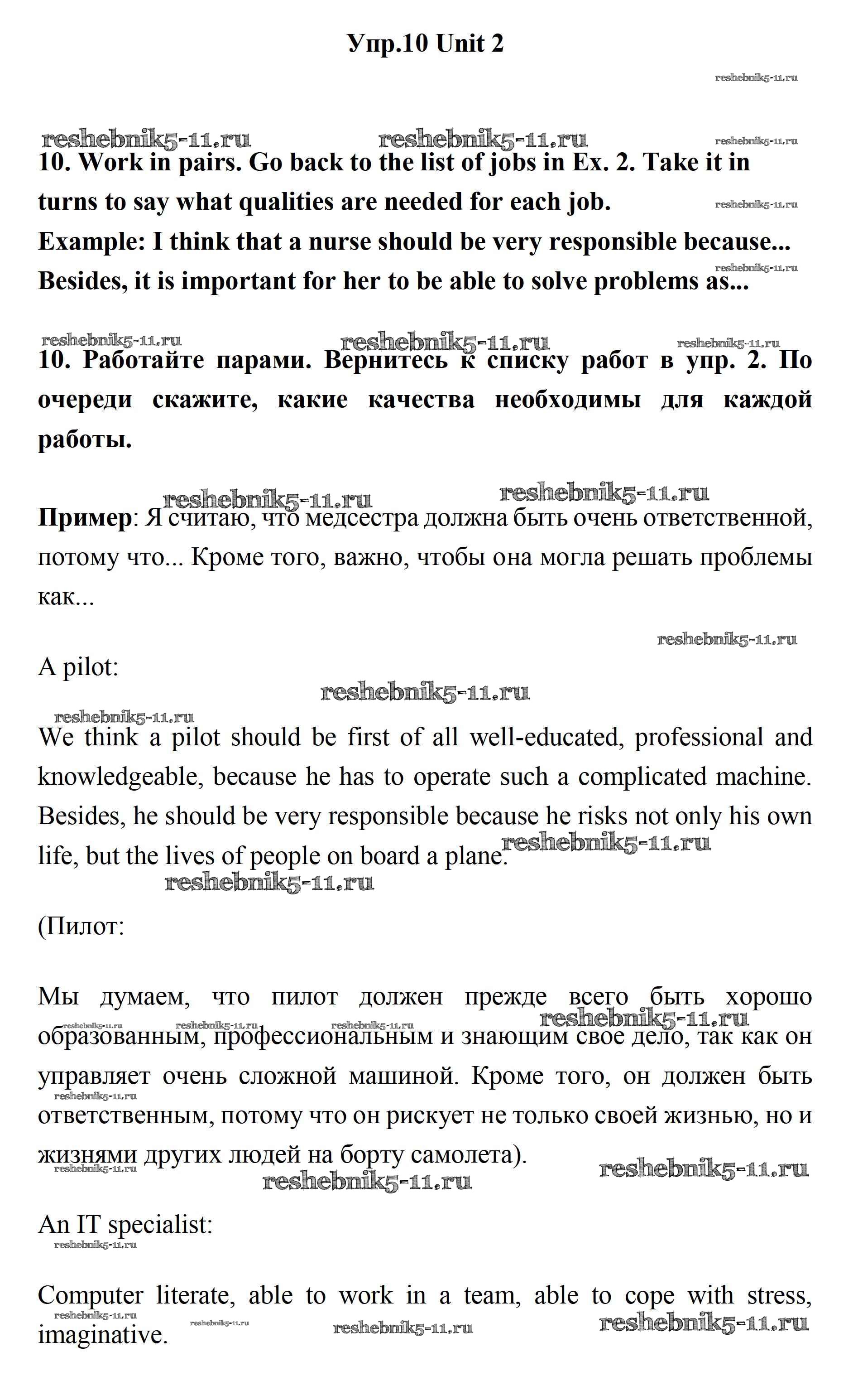 Готовая домашняя работа с ответами по Английскому языку за 11 класс Биболетова, Бабушис, Снежко Учебник Enjoy English Дрофа 2017 ФГОС - Unit 2. Your Dream Job 10