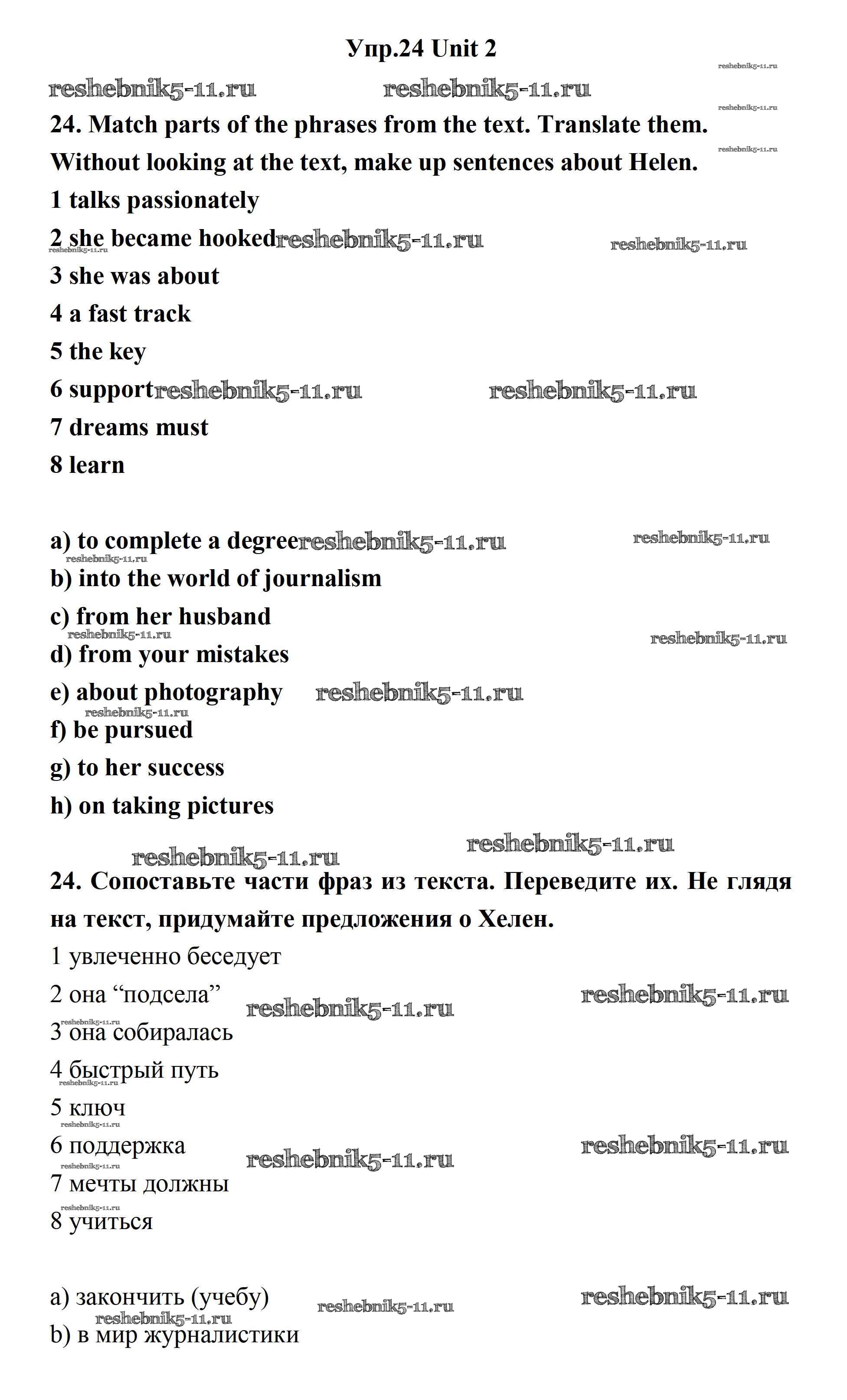 Готовая домашняя работа с ответами по Английскому языку за 11 класс Биболетова, Бабушис, Снежко Учебник Enjoy English Дрофа 2017 ФГОС - Unit 2. Your Dream Job 24