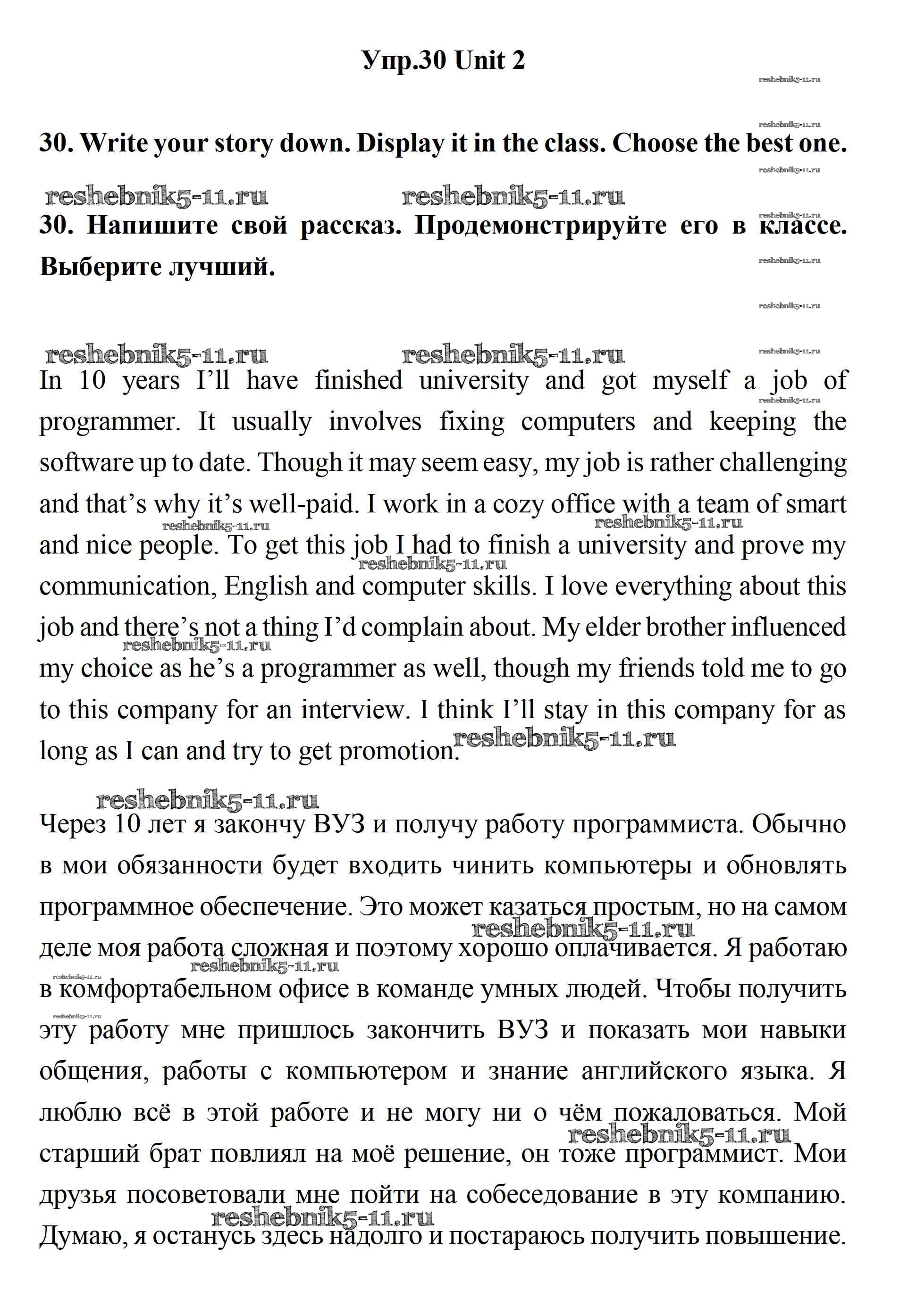 Готовая домашняя работа с ответами по Английскому языку за 11 класс Биболетова, Бабушис, Снежко Учебник Enjoy English Дрофа 2017 ФГОС - Unit 2. Your Dream Job 30